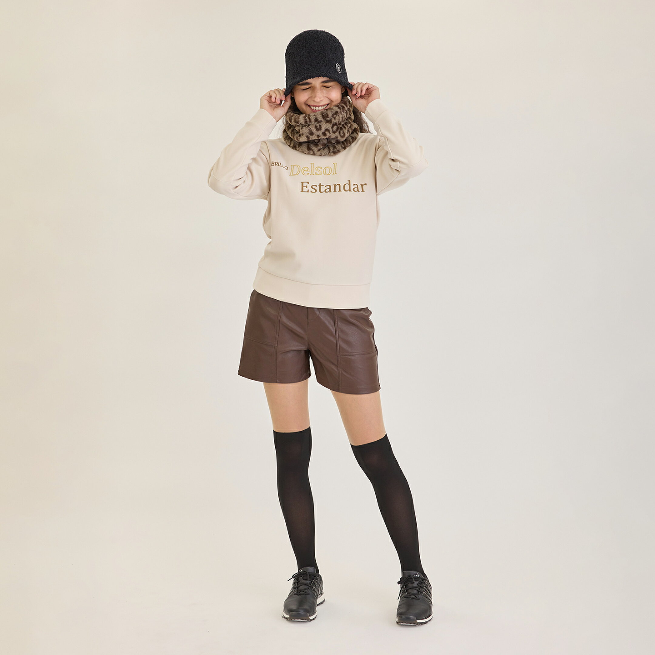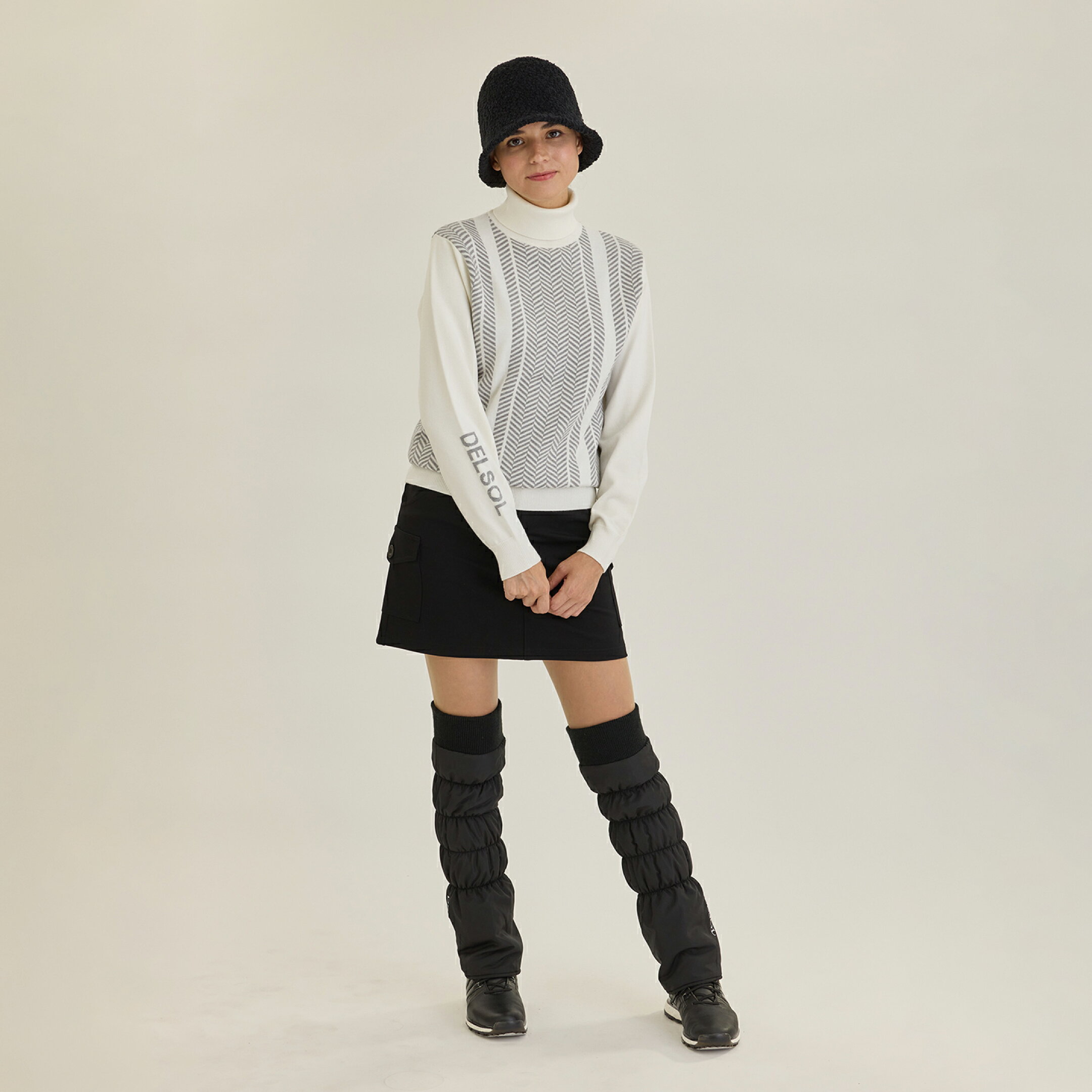 肌触りがよく編み目の細かいニットと レッグウォーマーで冬のラウンドも快適 ※レッグウォーマーは完売いたしました。