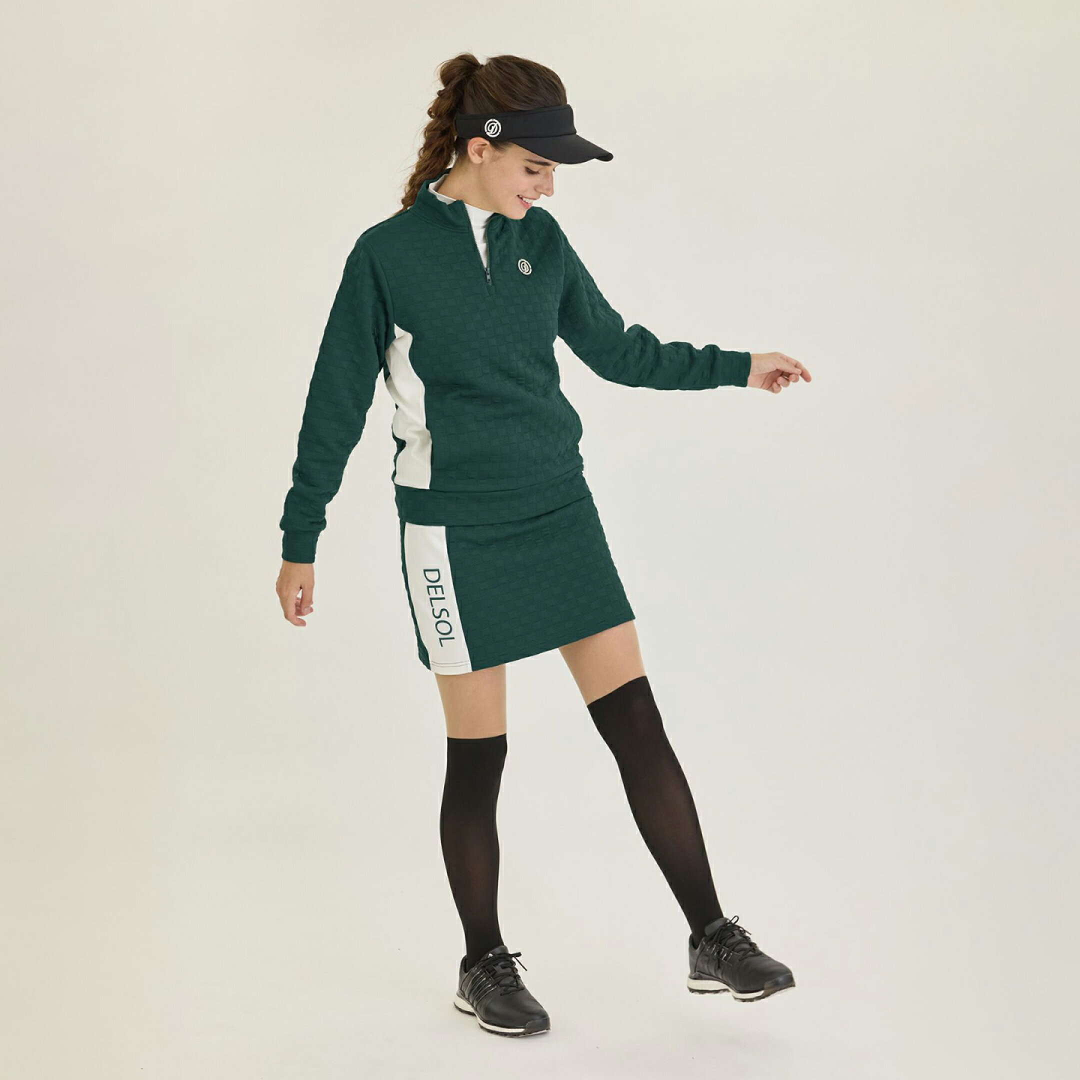 デルソルゴルフ ハーフジップリップル長袖 ゴルフウェア レディース セットアップ 大きいサイズ 秋冬 セット ストレッチ ゴルフ M L LL 3L 4L トップス スカート ゆったり 女性用 スポーツ グレー グリーン 上下セット 7905 緑 テニス スポーツ