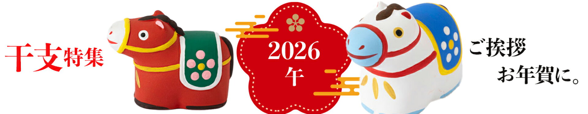 招福干支みくじ 午 2個セット 2026 置物 陶製 縁起物 金運 お正月 お年賀 中川政七商店