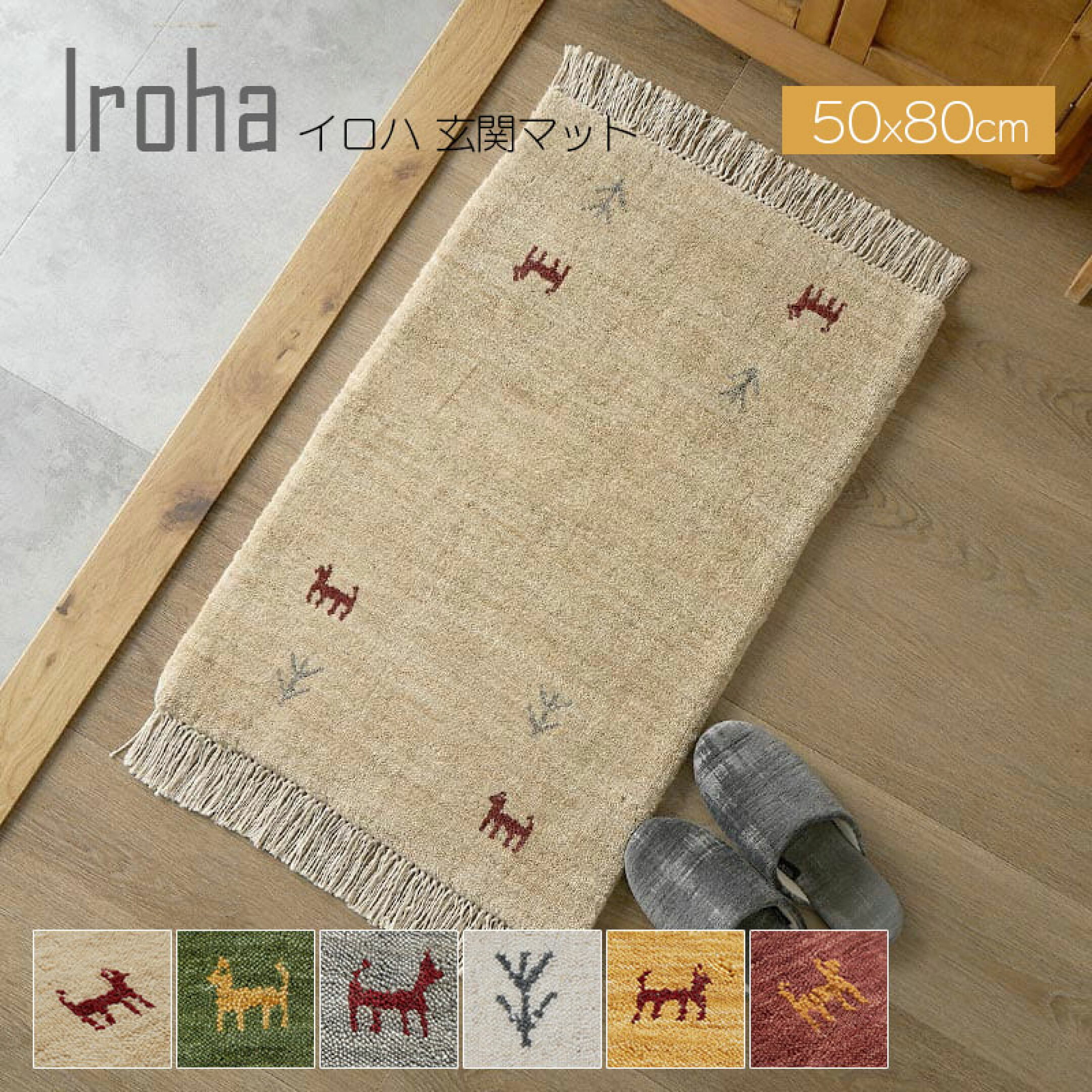 天然ウール100% インドギャッベ 玄関マット 50x80cm かわいい おしゃれ オールシーズン クリスマス 新生活 敬老の日 誕生日 ギフト