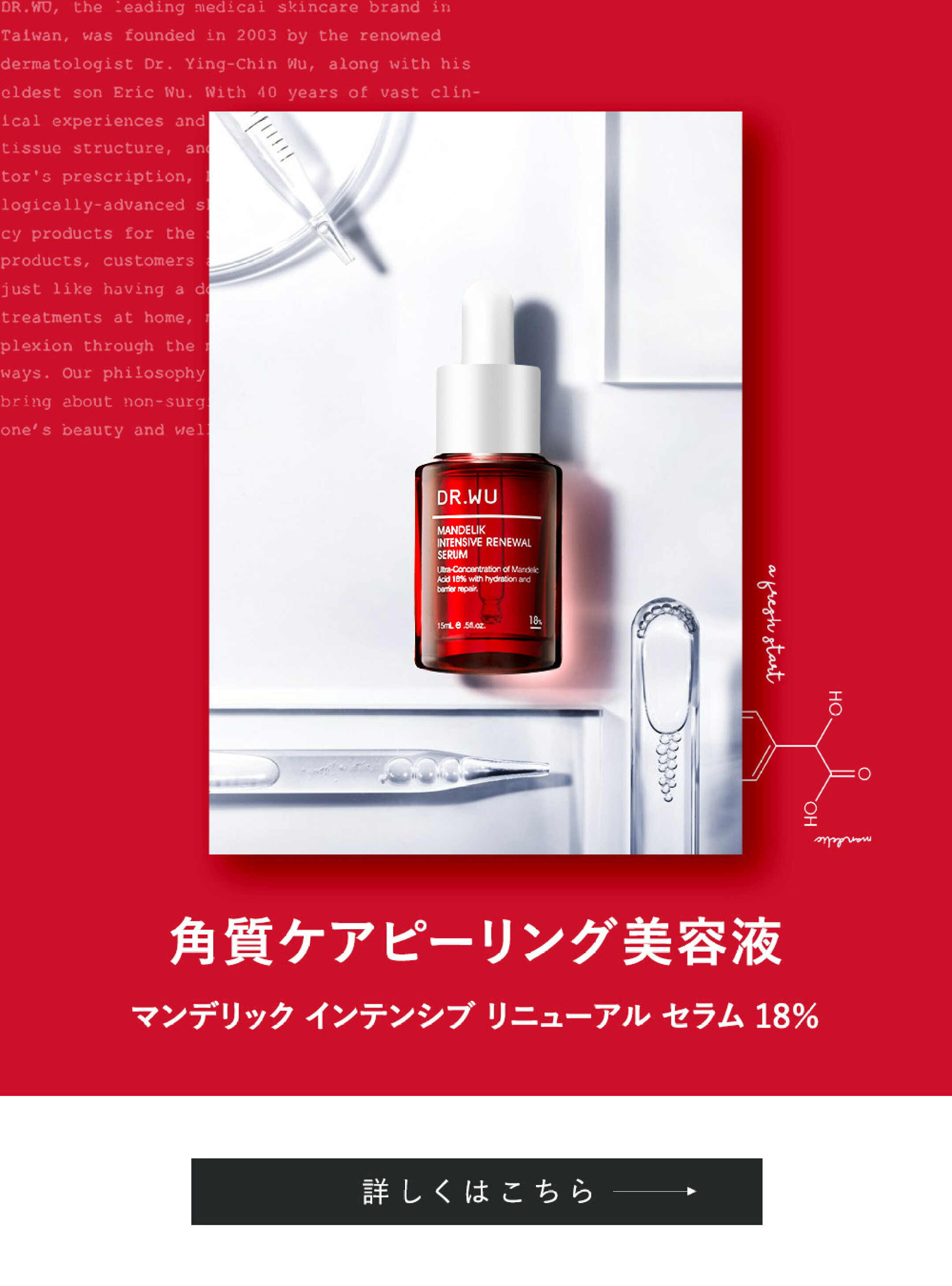 【DR.WU 公式】マンデリック インテンシブ リニューアル セラム 18% 15ml/30ml|美容液 スキンケア 毛穴 角質ケア キメ くすみ マンデル酸 敏感肌 低刺激 アルコールフリー ピーリング ドクターウー ドクターズコスメ