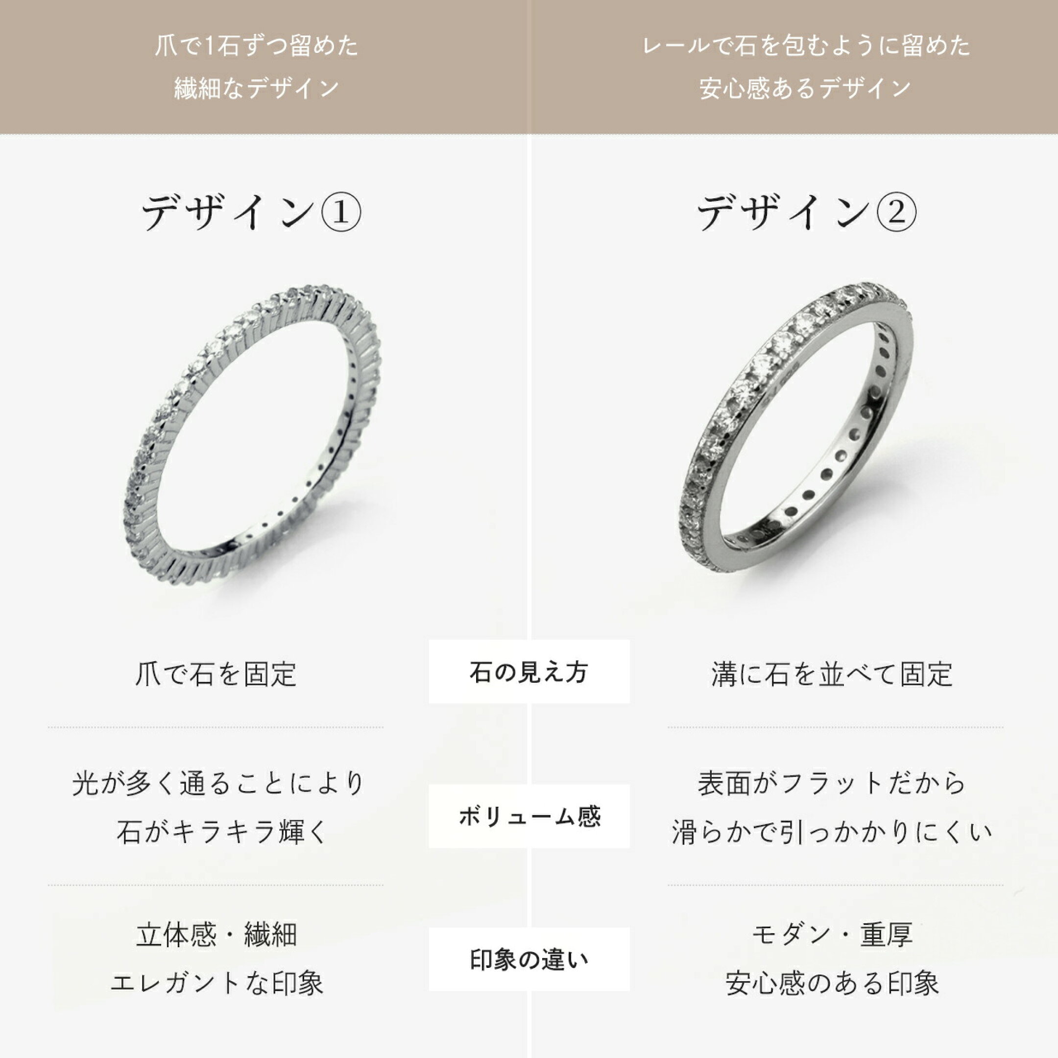 華奢で繊細な印象のタイプと、しっかりと存在感を放つタイプの2種類からお選びいただけます。