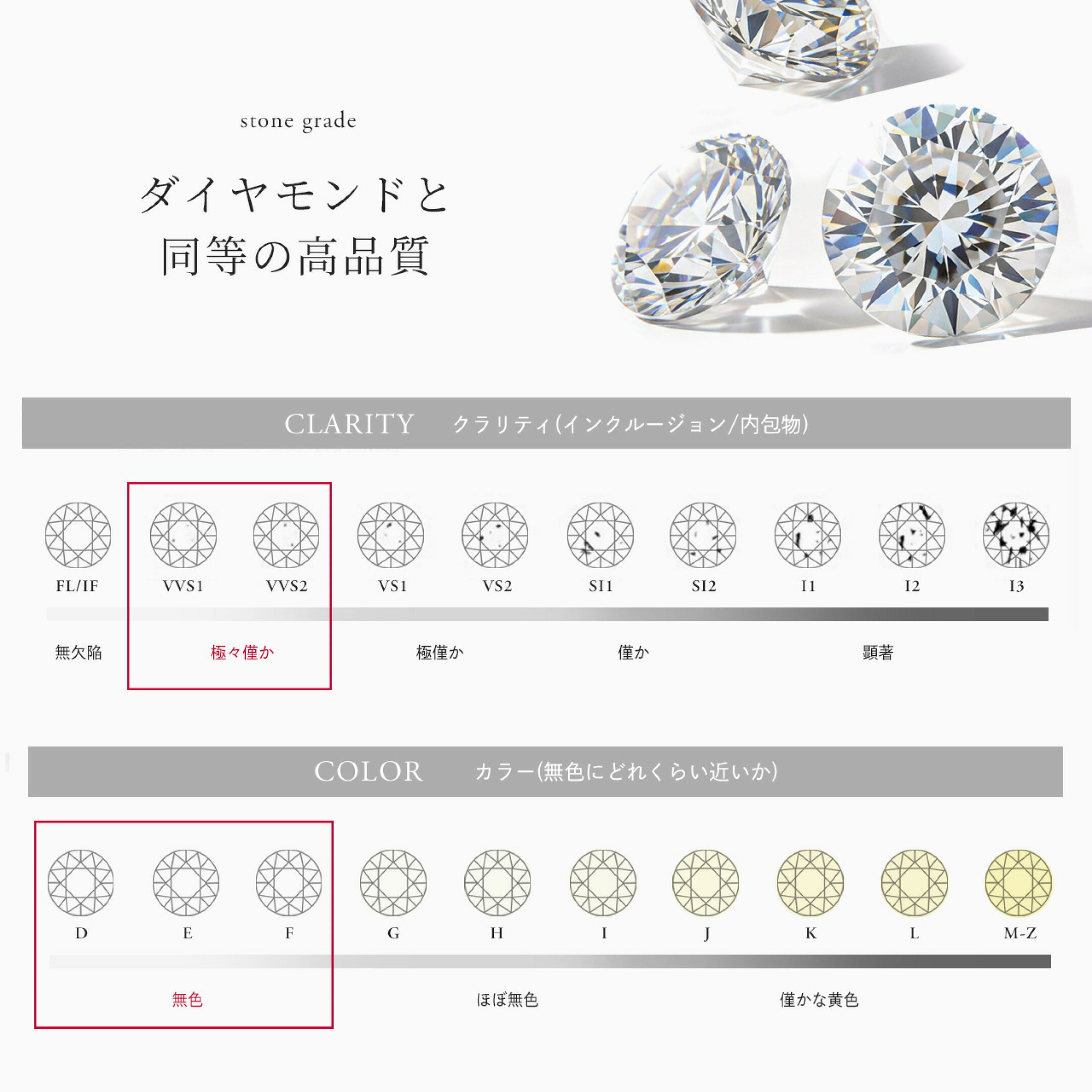 ダイヤモンドの約2.5倍もの輝きを誇るモアサナイトを使用。
