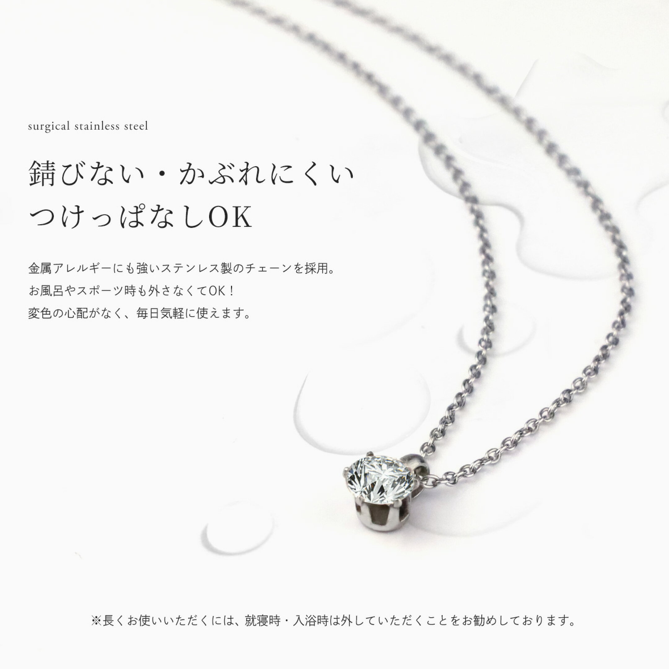 金属アレルギーに配慮した素材を使用しているので、毎日身につけても安心です。