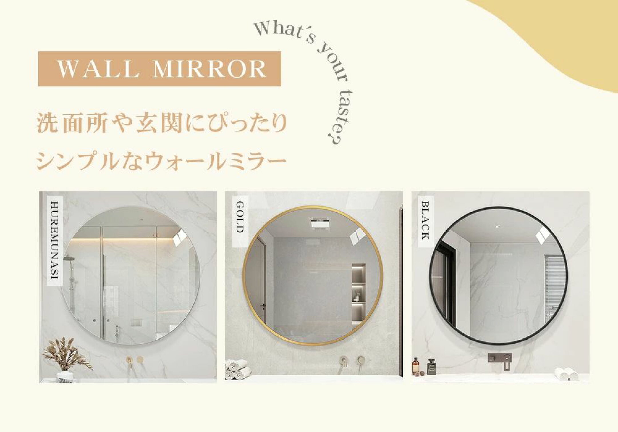 【レビュー特典】洗面鏡 ウォールミラー 丸鏡 幅50cm 壁掛けミラー シンプル かわいい 丸 おしゃれ 洗面所 洗面台 モダン 貼り付け 取扱簡単 40cm 壁鏡 ゴールド 幅60cm 傷防止 高精細 モダン トイレ 鏡 寝室 新築 民泊 入口 玄関 浴室 ブラック ホテル 高級 化粧