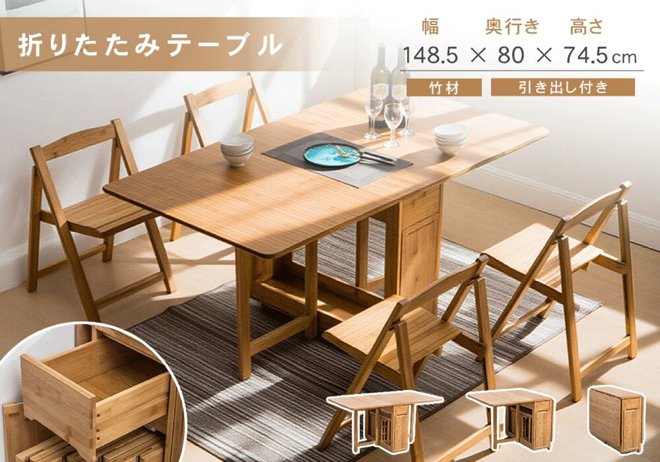 センターテーブル 折りたたみ式 ラタン バタフライテーブル ダイニングテーブル 4人掛け 折畳み式 天板拡張 リビング コーヒーテーブル 食事 竹 ナチュラル ブラウン リビング 北欧 モダン おしゃれ 収納付き 多機能 長方形 省スペース 4人用 キャスター付き 移動便利