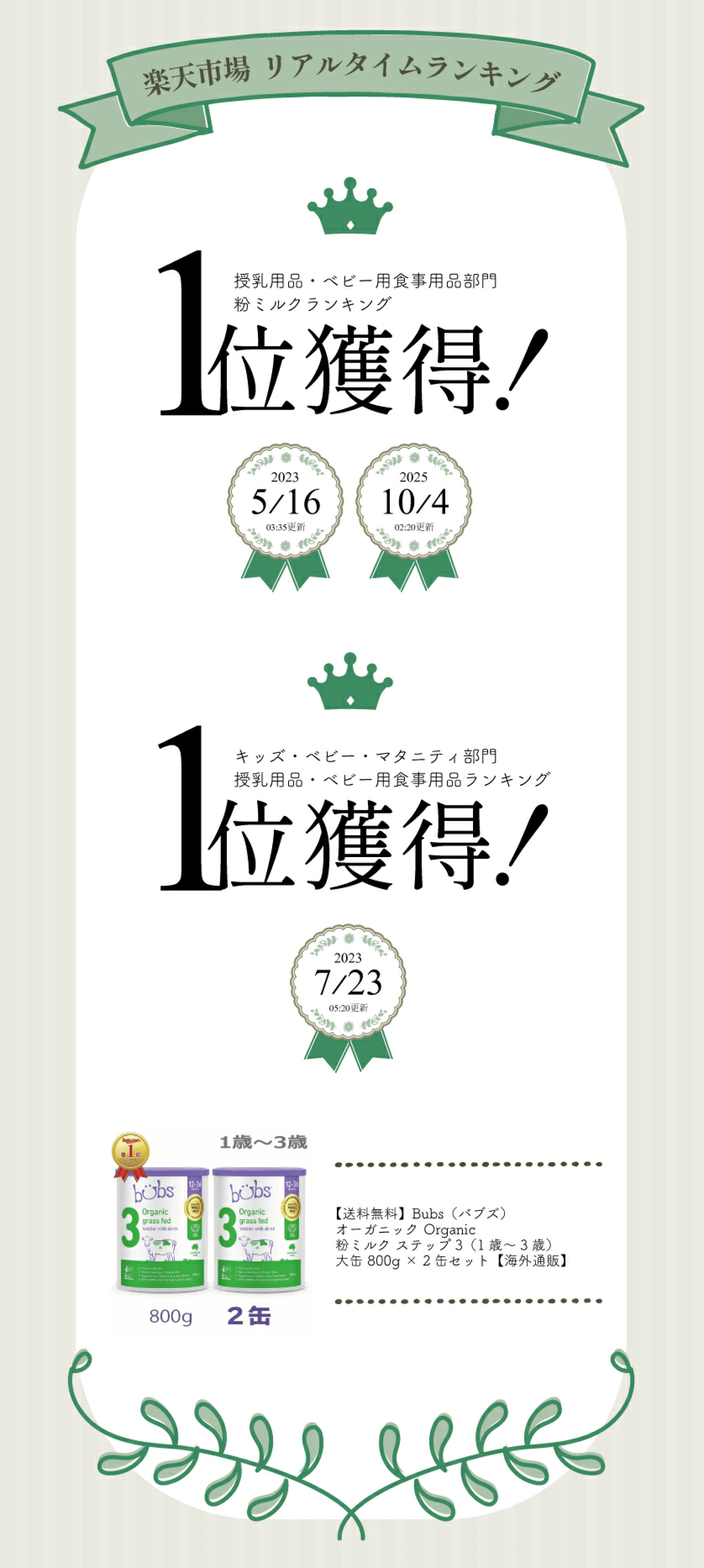 【送料無料】Bubs(バブズ)オーガニック Organic 粉ミルク ステップ3(1歳〜3歳)大缶 800g × 3缶セット【海外通販】