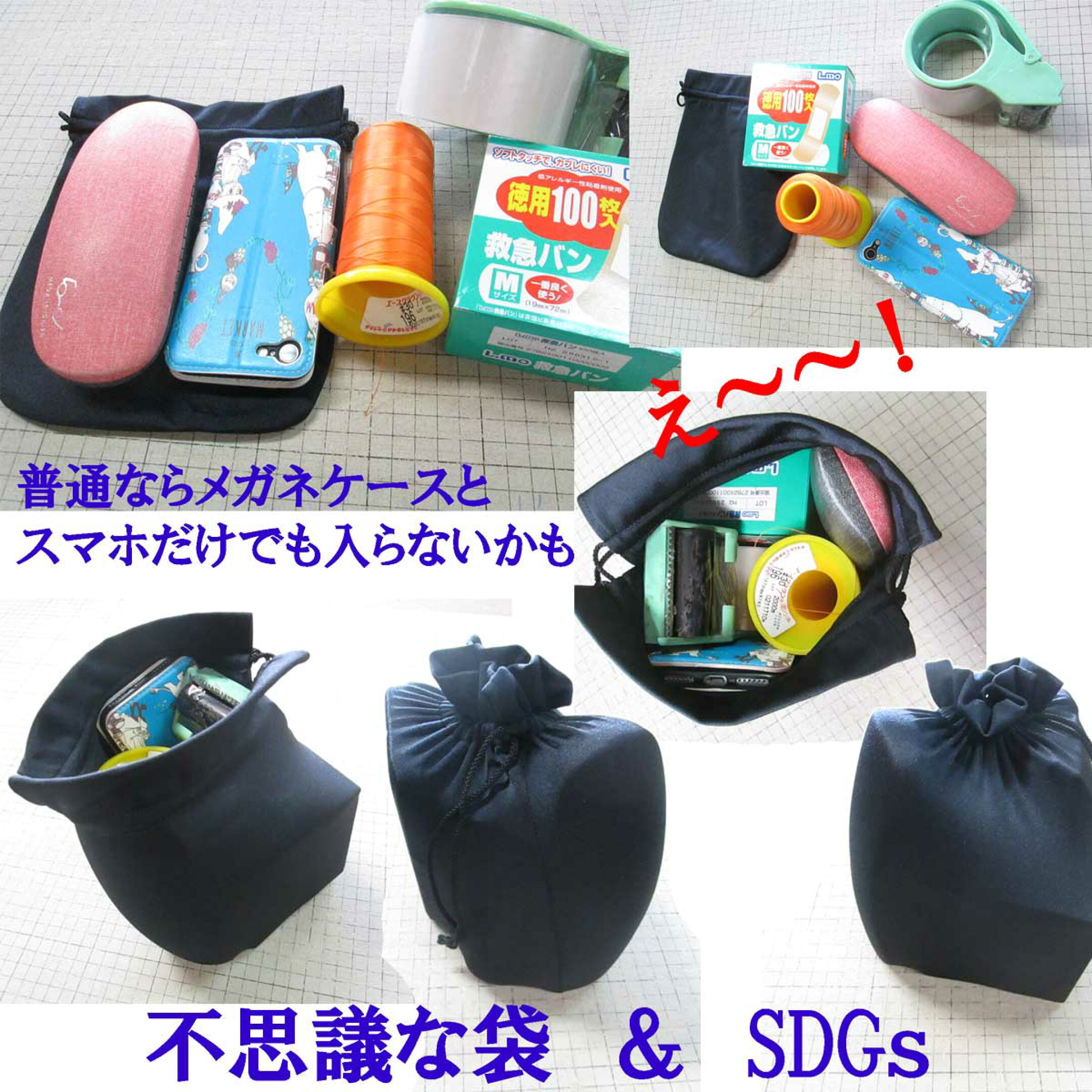 いっぱい入る便利な不思議な袋~ブラック無地