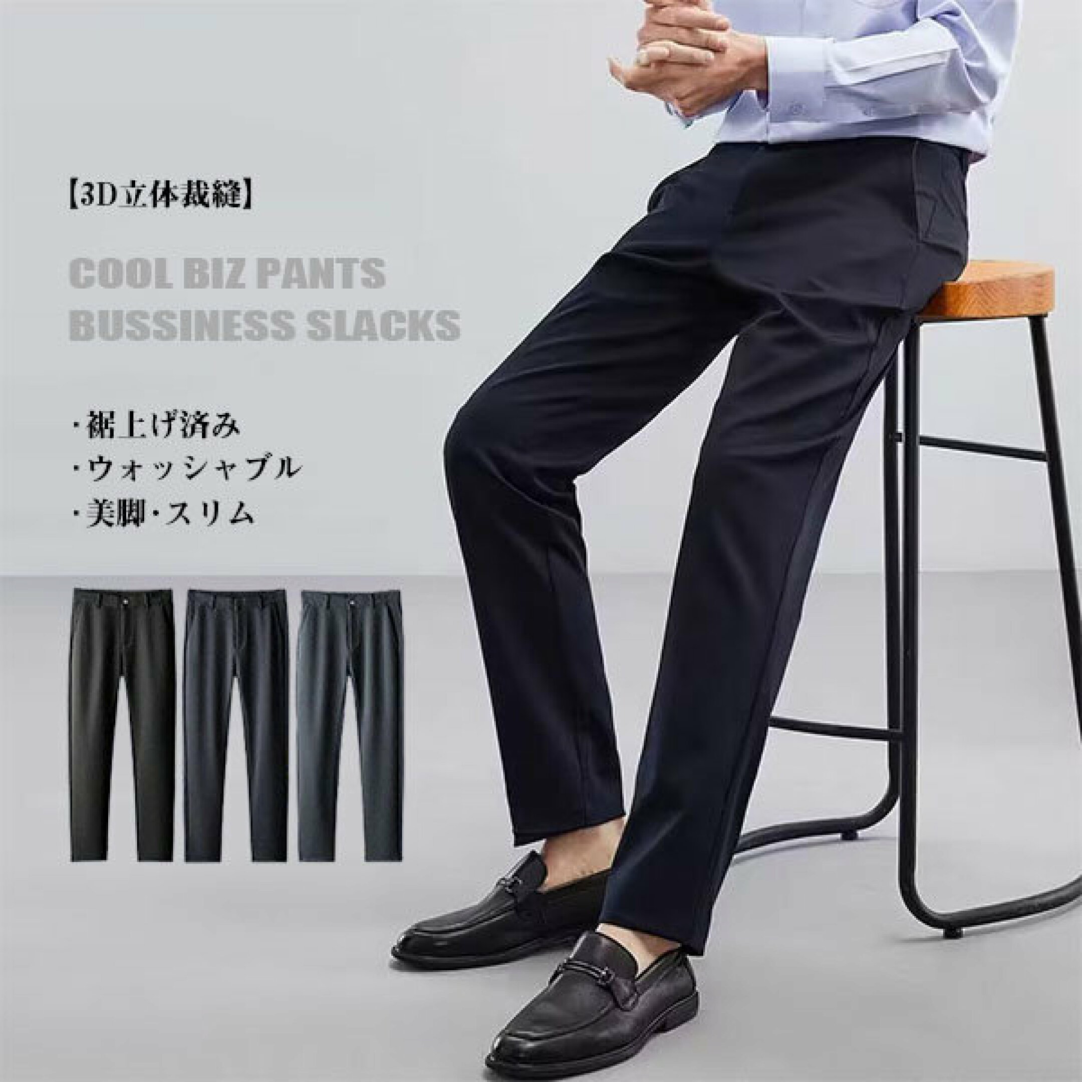 送料無料 スラックス メンズ 裾上げ済 ビジネスパンツ スリムパンツ 細身 美脚 ボトムス おしゃれ 男性 クールビズ ウォッシャブル 洗える 紳士パンツ 春夏秋