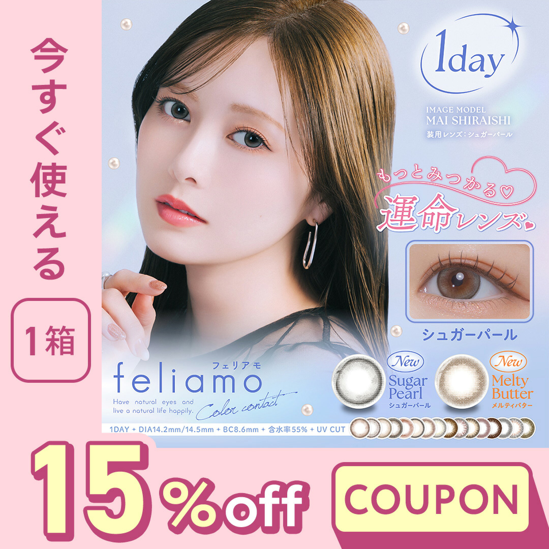 フェリアモ 10枚入り ×2箱セット PIA カラコン カラーコンタクト 1day ワンデー 1日使い捨て 度あり ナチュラル カラーコンタクトレンズ 14.5 14.2 白石麻衣