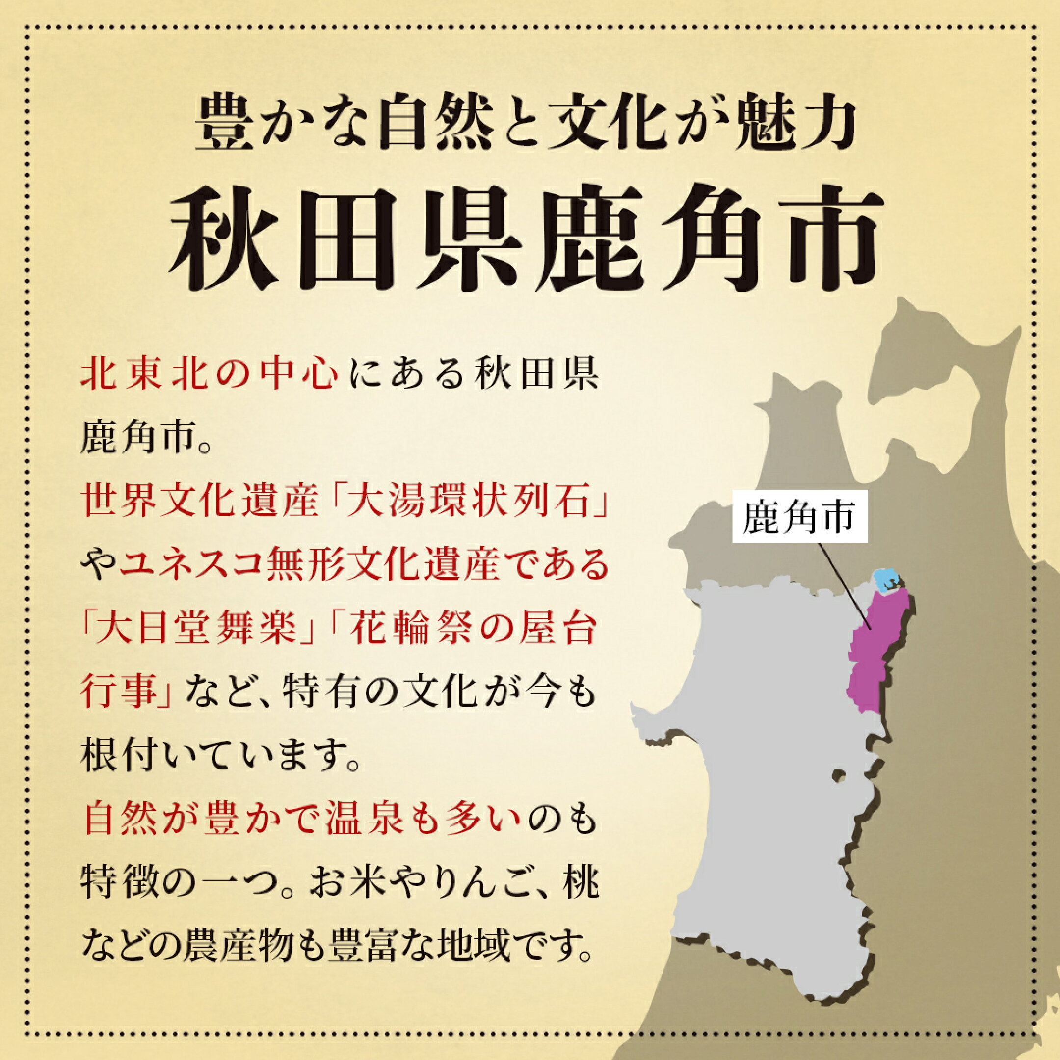 ■返礼品について ・返礼品は、生産者または株式会社恋する鹿角カンパニーから直送でお届けいたします。 ・配送予定日は決済方法及び返礼品によって異なります。 【クレジットカードをご利用の場合】寄附申込から14日以内に発送予定 【その他の決済方法をご利用の場合】入金確認後14日以内に発送予定 ■受領書について ・受領書は、入金確認後、注文内容確認画面の【注文者情報】に記載の住所に14日以内に発送いたします。 ■寄附金証明書について 入金確認後、注文内容確認画面の【注文者情報】に記載の住所にお送りいたします。 発送の時期は、寄附の決済から2週間程度を目途に、お礼の特産品とは別にお送りいたします。 ■ワンストップ特例申請書について 申請書を受領書と一緒にお送りしますので、必要情報を記載の上鹿角市役所へ返送してください。