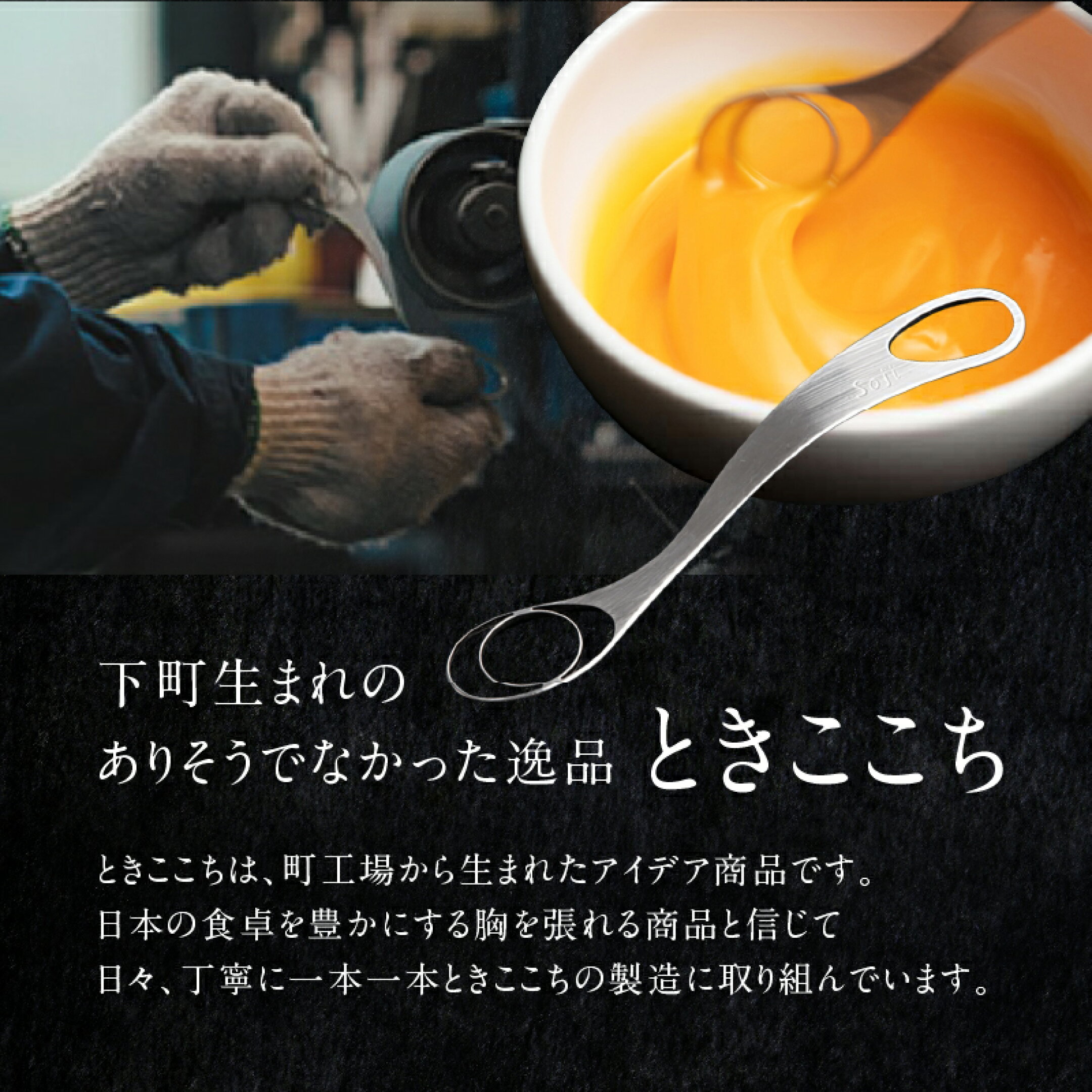 「ときここち」は東京都荒川区に工場を構え、精密板金加工を得意とする「トネ製作所」の熟練技術で作り上げた、卵を溶くことに特化した調理器具です。ときここちを使うことで、黄身と白身が驚くほど混ざり合います。 開発のきっかけは「卵の栄養は摂りたいけど白身の”ドロッ”と感が苦手・・」という社長の奥様のお悩みでした。 そんな奥様のために開発されたのが【ときここち】です!話題の製品にこんな素敵な開発秘話があったんですね!
