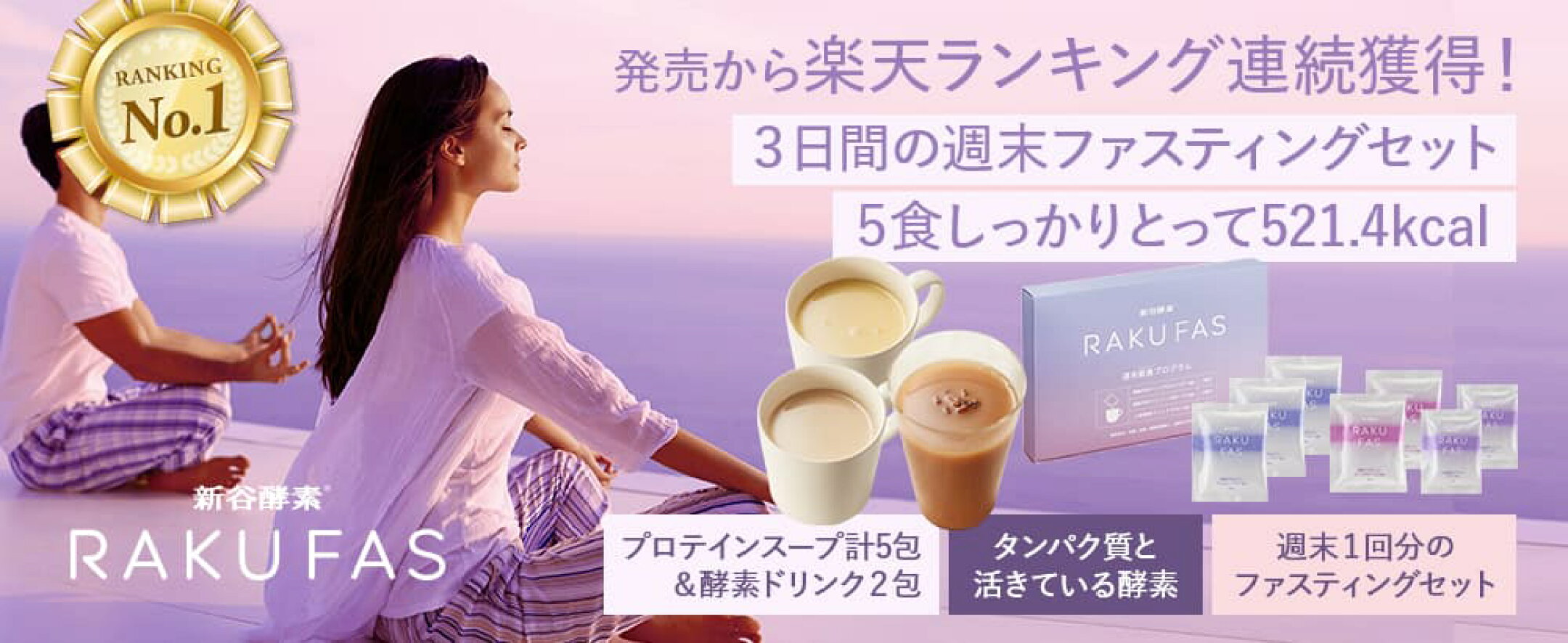 【 3日間 週末断食プログラム】 新谷酵素 ラクファス ( パープル ) ファスティング 【 メール便 送料無料 】 ダイエットサポート週末1回分 セット ( 酵素 ドリンク 2食, 酵母 プロテイン スープ 5食 ) 3日 痩せる 1週間 の週末に RAKUFAS
