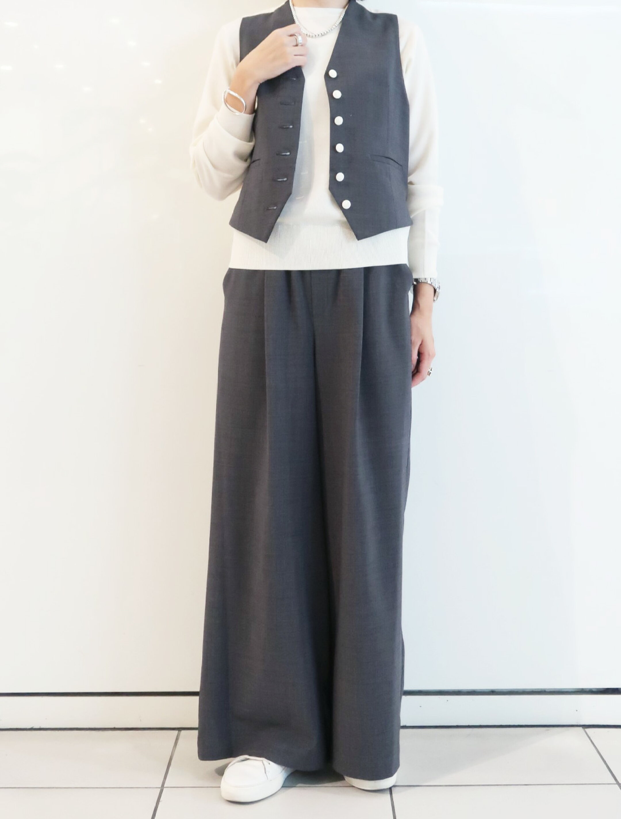 裾ダブルワイドパンツ【Fleur de lis|フラデリ】レディース ボトムス ウエストゴム センタープレス ハイウエスト クロップド丈 ロング丈 マキシ丈 ポケット Iライン ストレート ビエラ調 日本製 通勤 オフィス トラディショナル 2025-26AW 秋冬新作 手洗い可