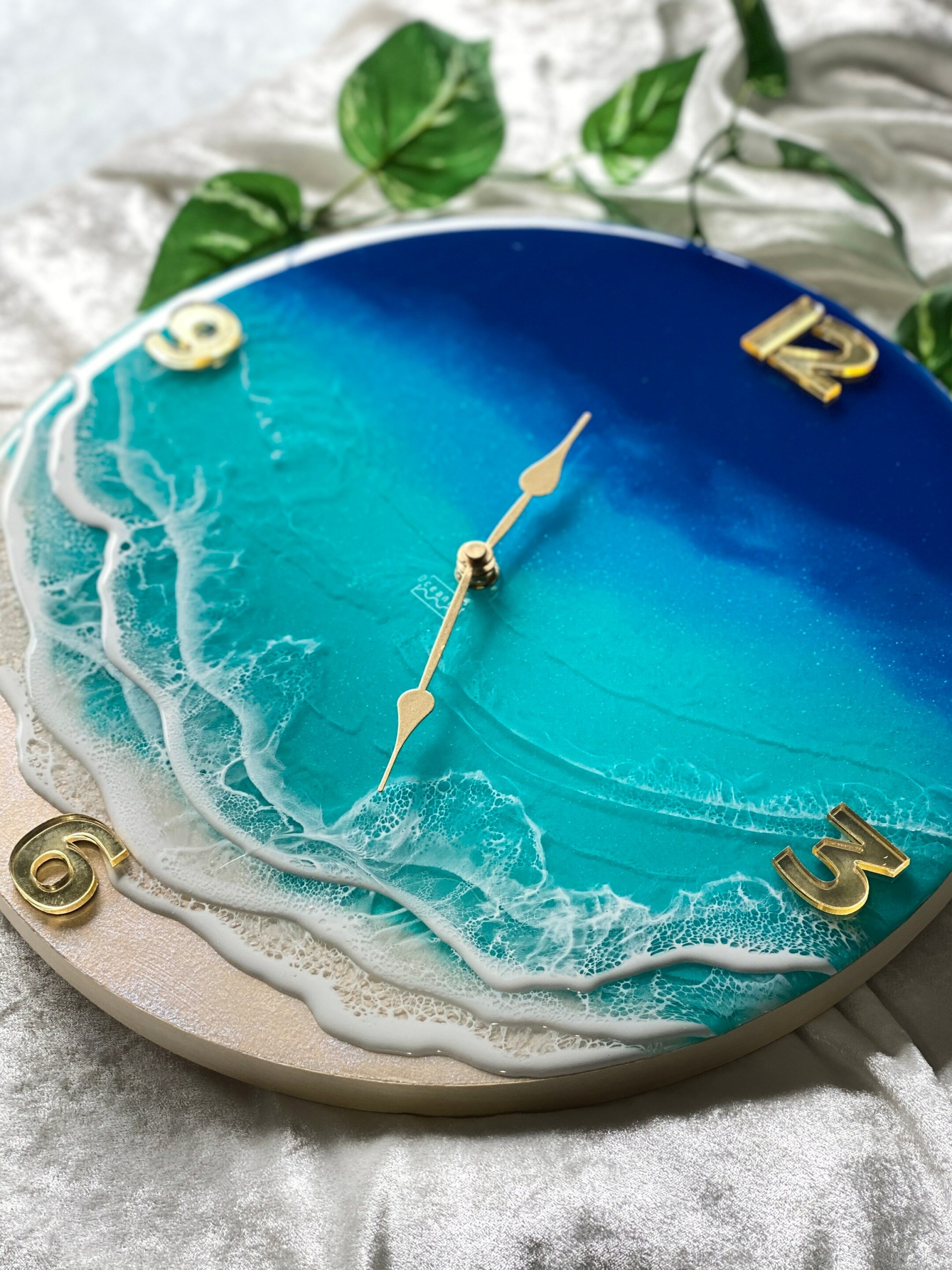 【オーシャンアート】22cm 海の掛け時計 丸形 ブルー エメラルドレジンアート 海 波 雲 夏 ハワイ 自然 風景 壁掛け 西海岸 宮古島 沖縄 マリン トロピカル インテリア モダン リビング ビーチ 人気 おしゃれ