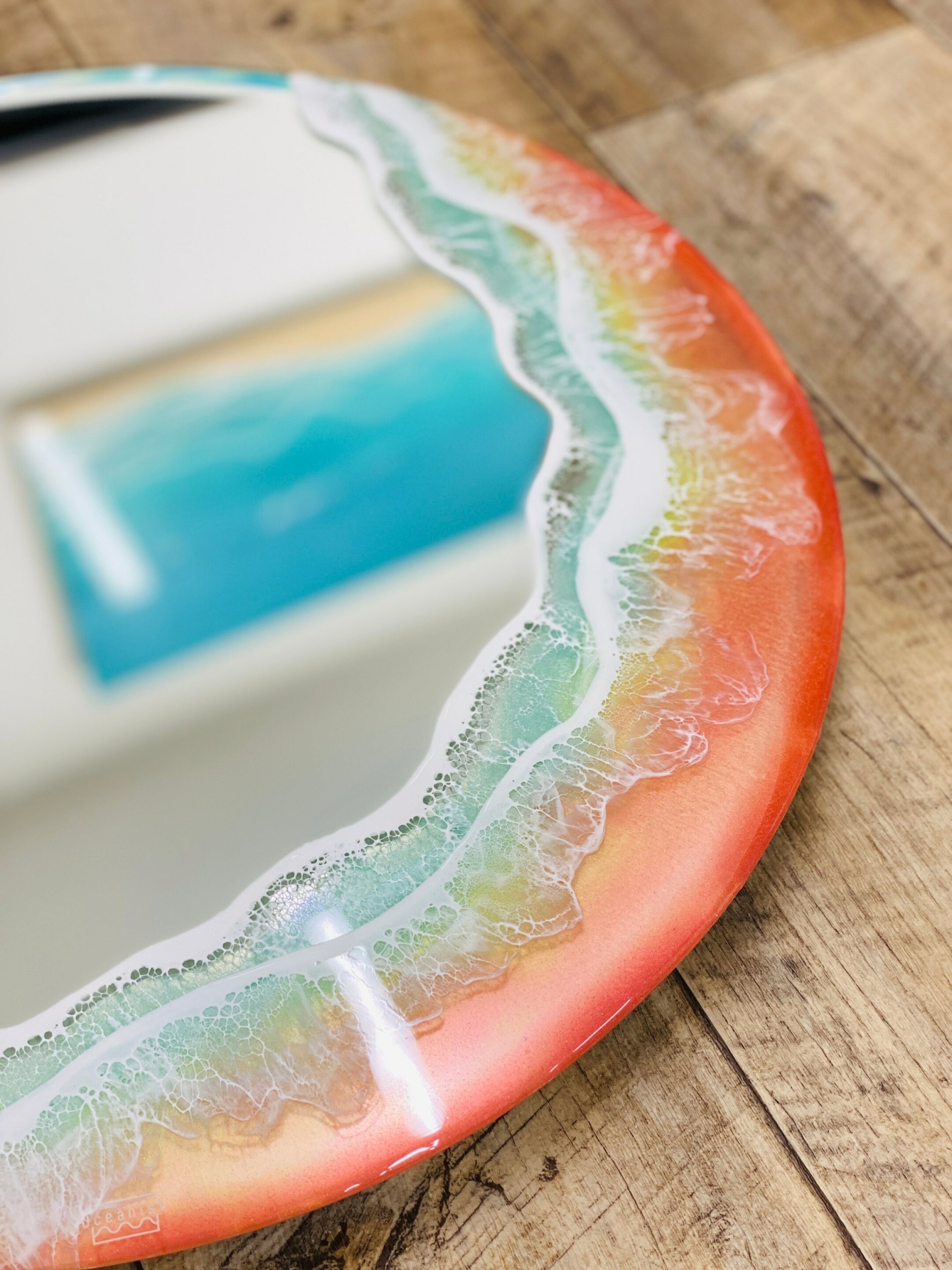 【オーシャンアート】ウォールミラー オーシャン 淡い夕日 50CM レジンアート 海 波 雲 夏 ハワイ 自然 風景 西海岸 宮古島 沖縄 マリン トロピカル モダン 生活雑貨 コスメ雑貨 小物 ビーチ 人気 おしゃれ Oceanist Ocean art mirror