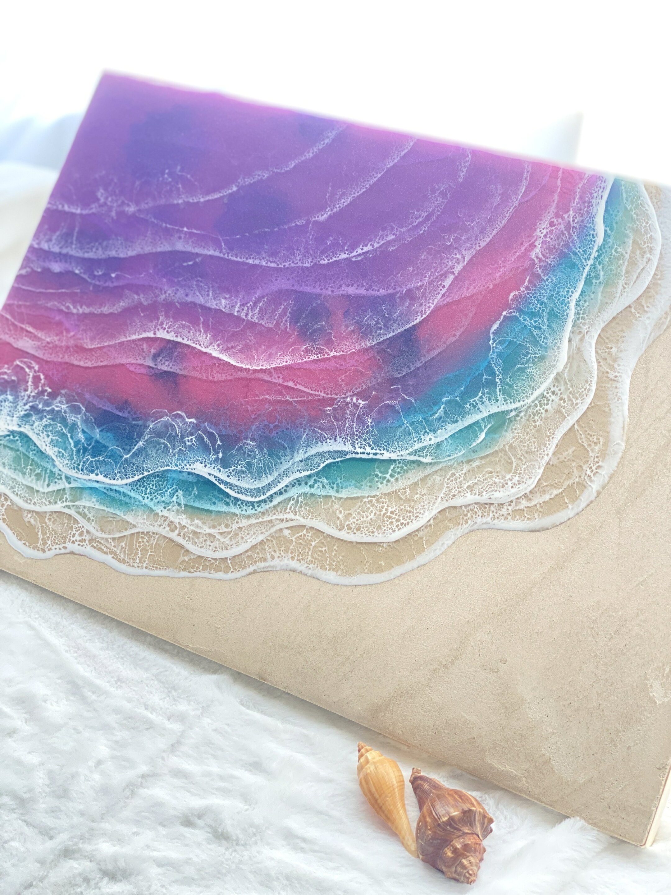 ずっと気になっていた商品で、手に取ることができて嬉しいです。 一つ一つ手作りで同じものがないとのことで、とても特別感があって良いですね 波打ち際の模様がとてもリアルで綺麗です 海の部分も少しラメが入っているのかキラキラしていて太陽の光が当たってキラキラする水面のようでとても綺麗です プレゼントとしても喜ばれるんじゃないかと思います
