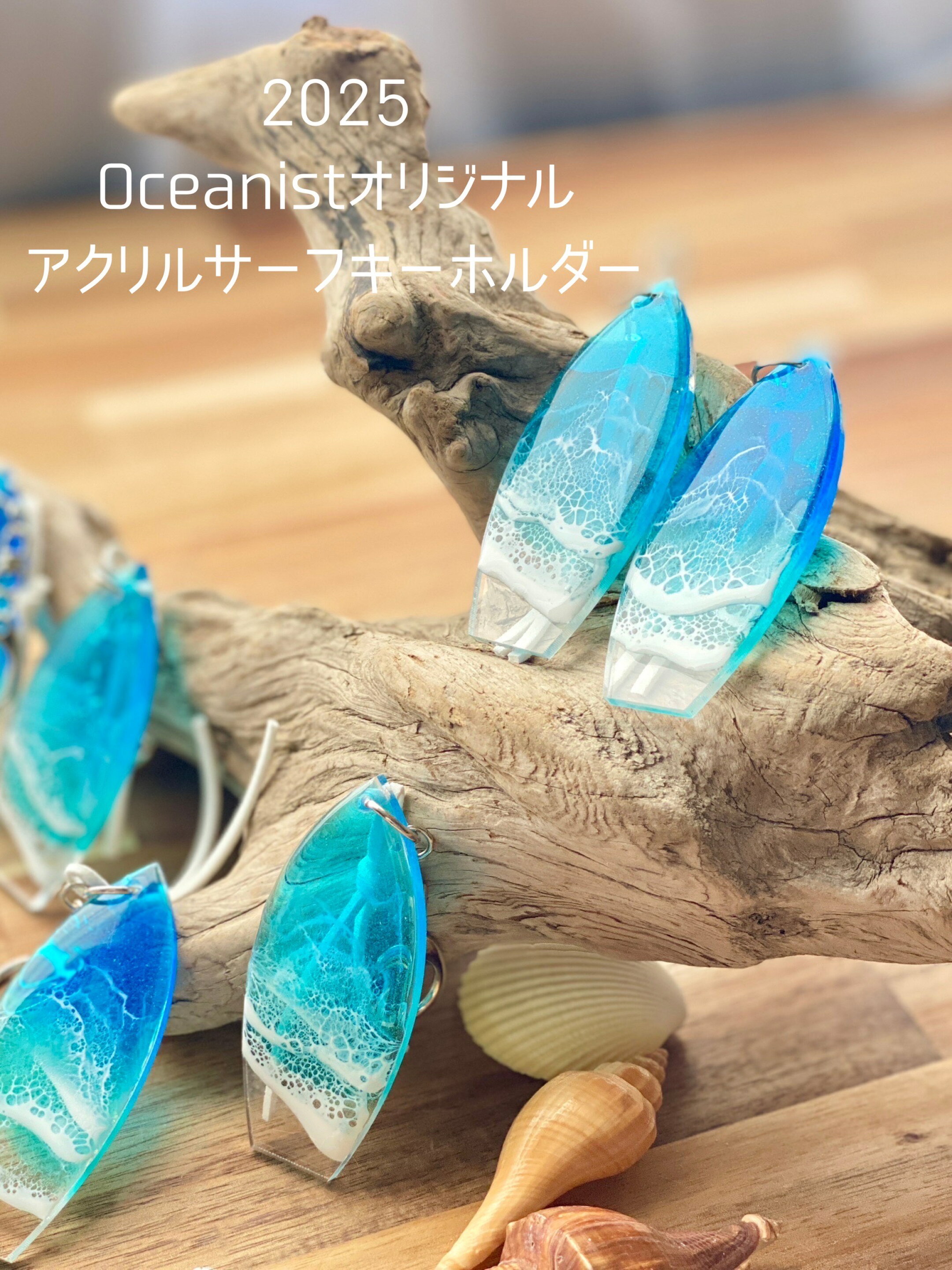 【オーシャンアート】2025 アクリルサーフ キーホルダーオーシャン 3.5cm×8cm ミニキーホルダー ブルーエメラルドレジンアート 海 波 雲 夏 ハワイ 自然 風景 西海岸 宮古島 沖縄 ファッション小物 マリン トロピカル ビーチ おしゃれ oceanist Ocean art key ring