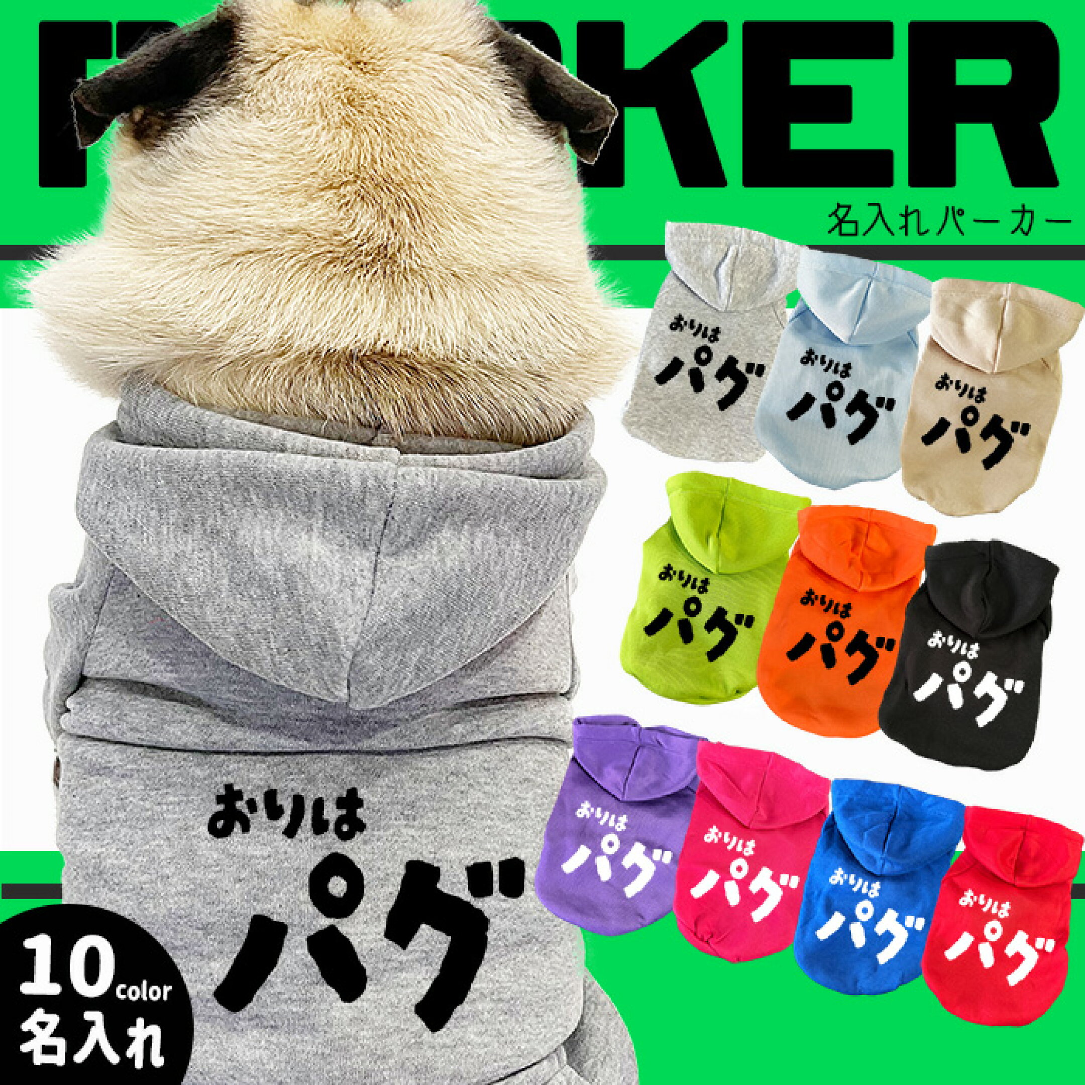 【G-snap】89 パグ パーカー専用 前面 背面 おもしろ ネイビー ブラウン 名入れ 犬 小型犬 犬用 犬服 ドッグウエア 犬の服 スポーツ ペット オリジナル M L XL XXL ワンちゃん うちの子グッズ おでかけ お散歩 イベント 小型犬 薄手 人気 インスタ 映え トップス ギフト
