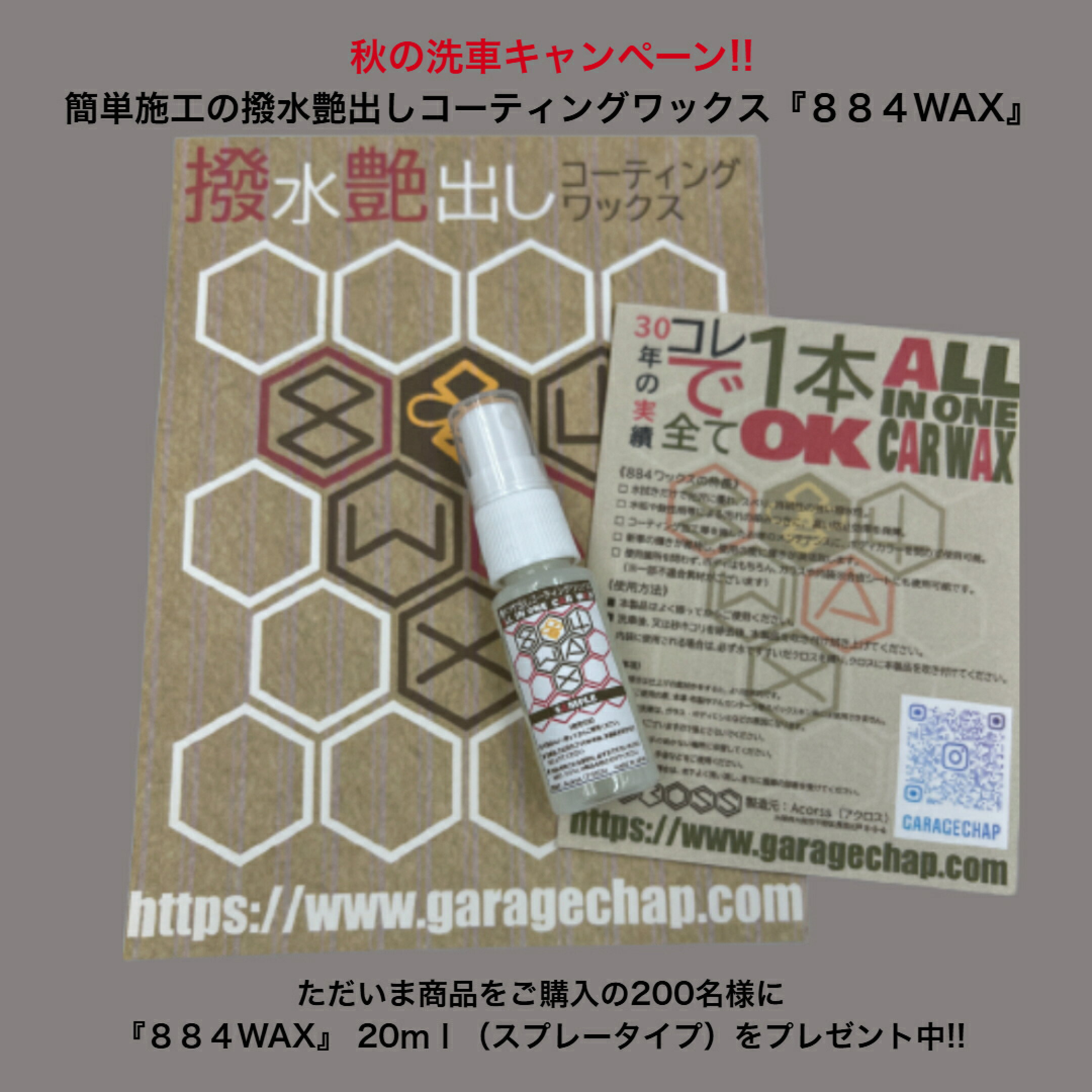 『884WAX』スプレーして拭くだけの簡単施工!!