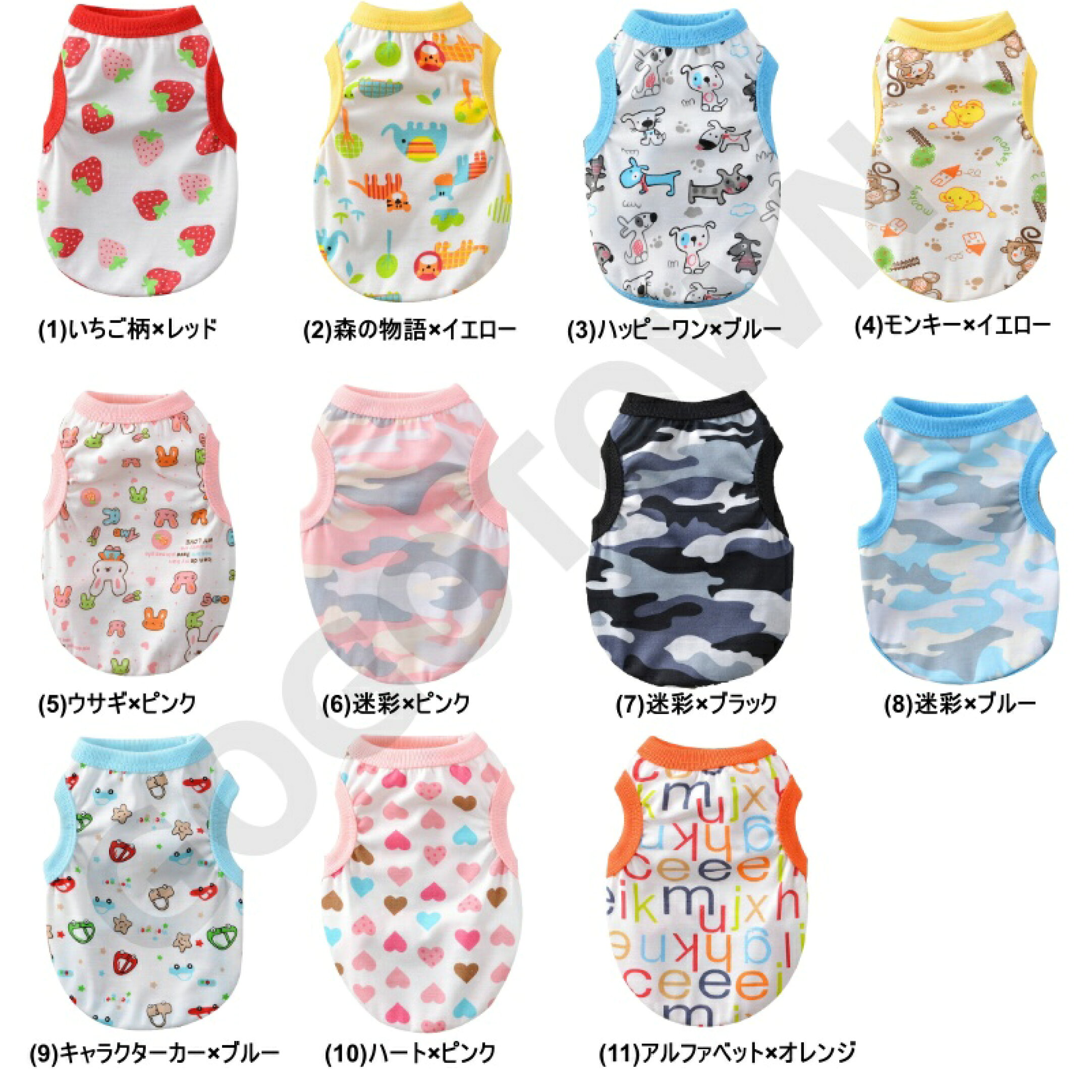犬服 犬の服 春夏用 タンクトップ 通気性メッシュ キャラクタータンクトップ 薄手 プチプラ 格安 小型犬 中型犬