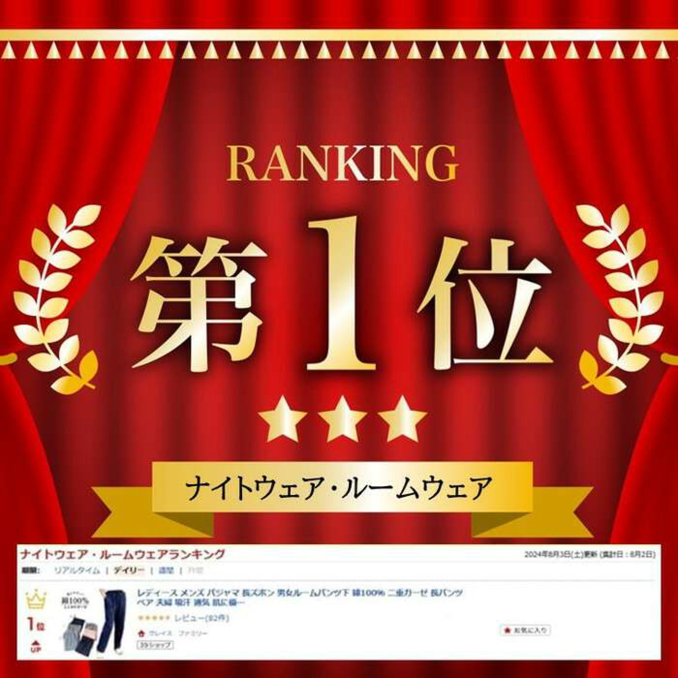 レディース メンズ パジャマ ルームパンツ ルームウェア ナイトウェア ホームウェア 長ズボン 部屋着 綿100% コットン 二重ガーゼ 男女 夫婦 恋人 ペア おそろい 吸汗 通気 肌に優しい 敏感肌 大きい M L XL XXL 3L 2XL 送料無料