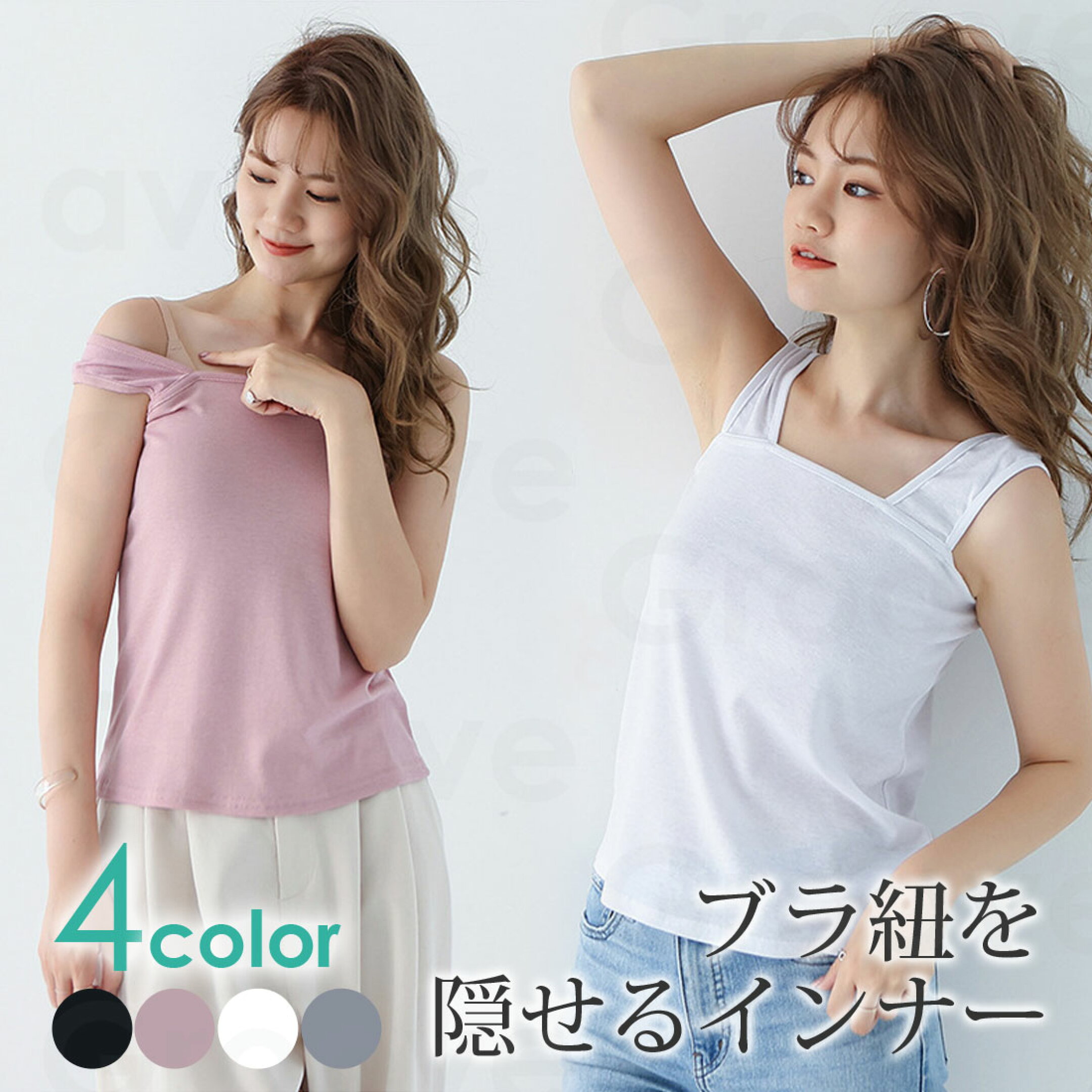 選べる2枚セット ブラ紐が隠せるインナー タンクトップ キャミソール ノースリーブ トップス レディース コーデ シンプル 定番 夏 GLF-05