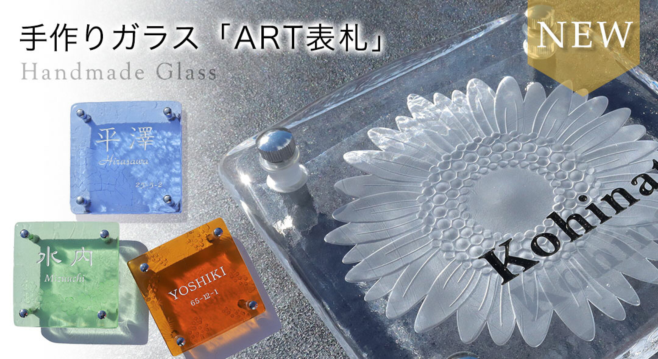 表札 戸建 おしゃれ 【ポイント10倍】 表札 手作りガラス「ART(アート)表札」 デザイン表札 高級感が感じられる 手作りガラスの色は4種類 文字色は25色 お花 デザインが豊富 人気の書体も揃えてます 機能門柱 看板 二世帯 オーダーメイド かわいい 高級 ヒマワリ NEW25