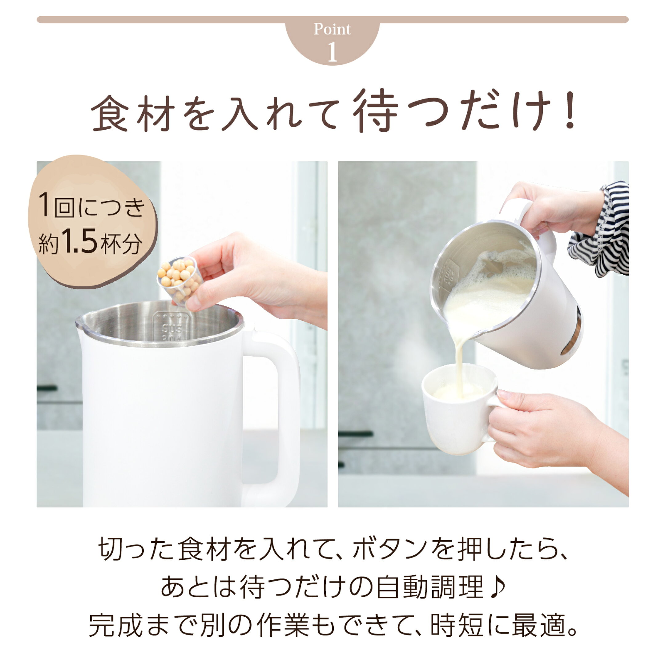 豆乳・ジュース・離乳食・おかゆ・雑穀まで、これ一台で。