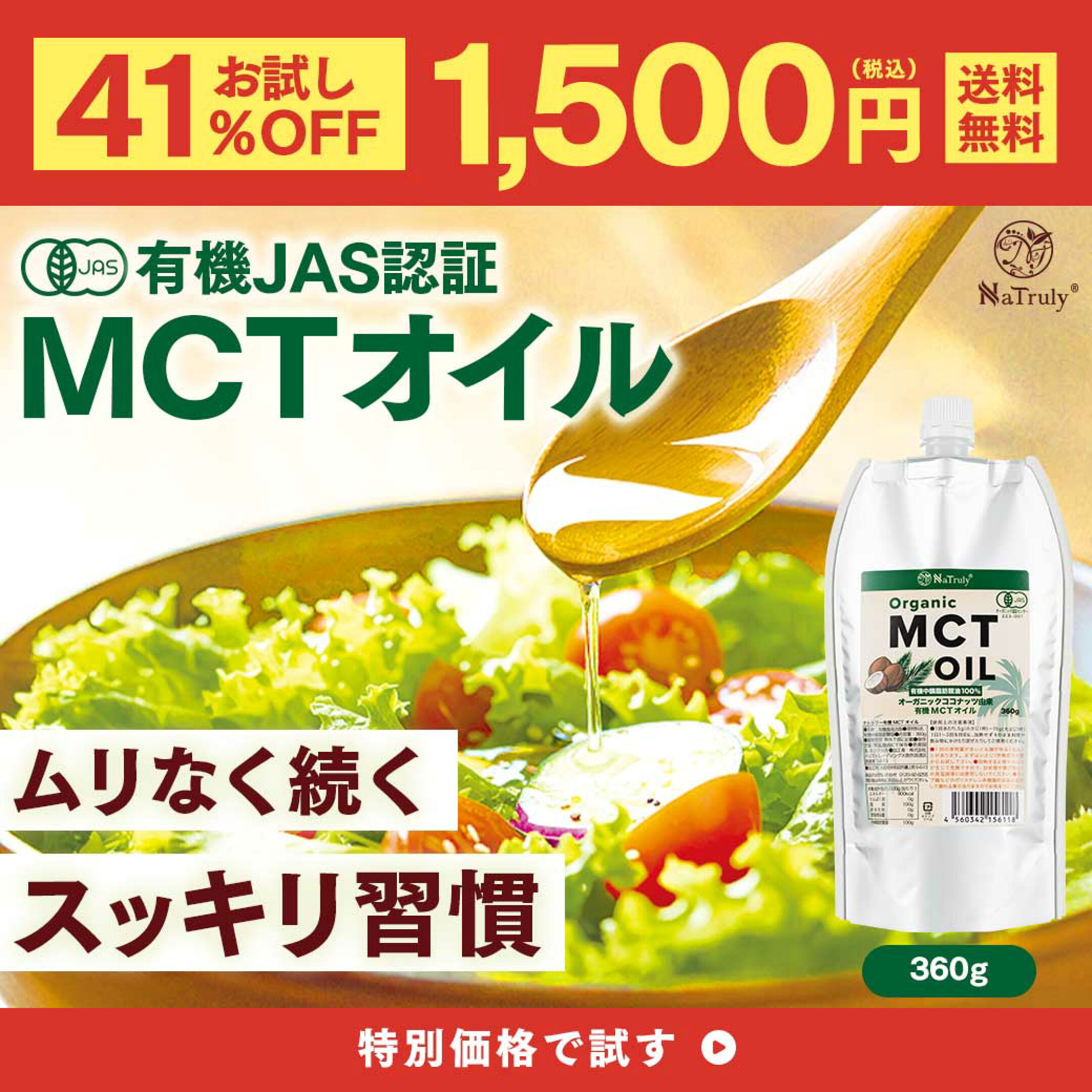 【1500円お試しSALE】 MCTオイル オーガニック MCTオイル 360g 中鎖脂肪酸100% 有機 ココナッツ由来 mct 糖質制限 ダイエット ケトン体 無味無臭 ココナッツオイル バターコーヒー 国内充填 エコ パウチ コンパクト ナトゥリー NaTruly