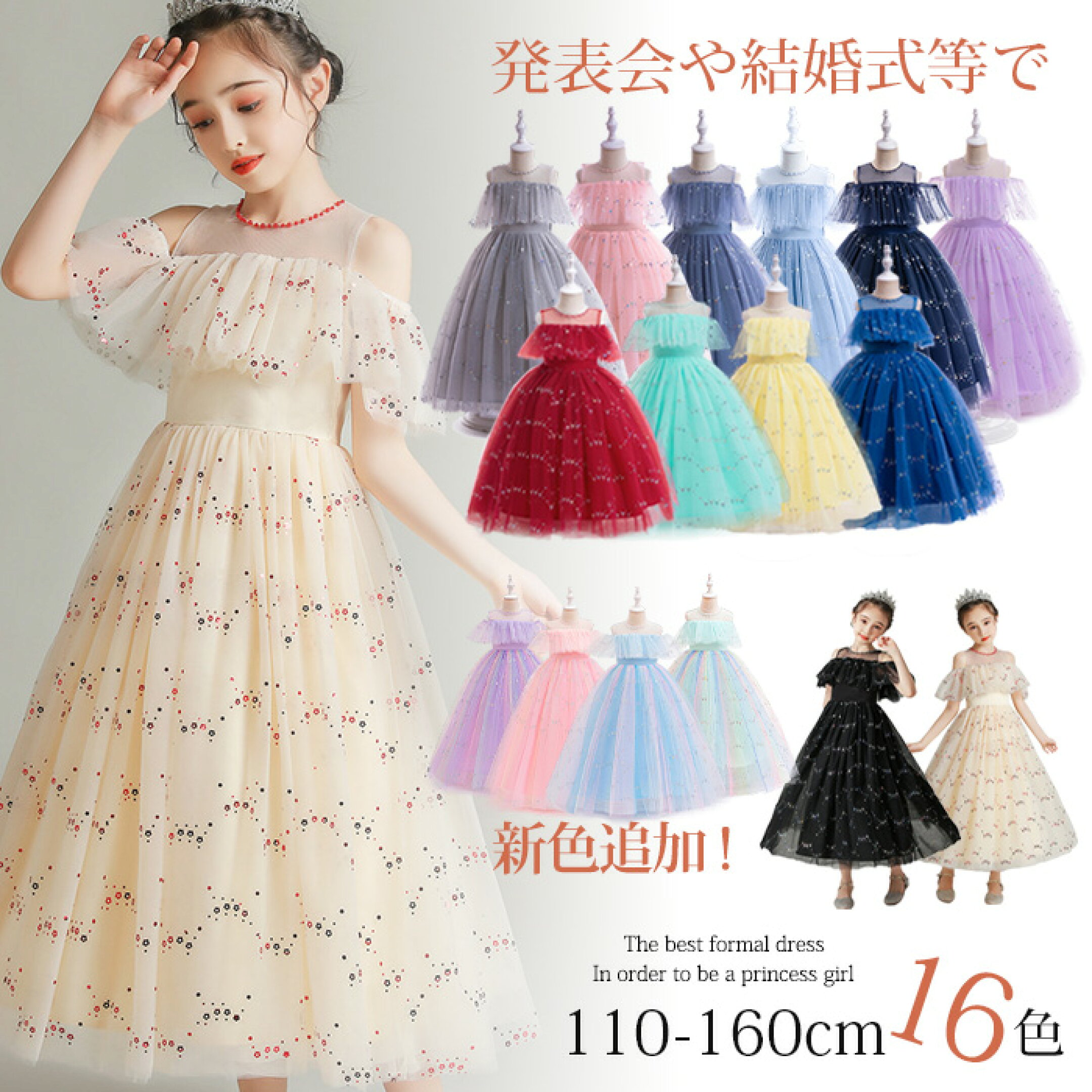 10歳なのでこのような幼いデザインのドレスはこれで最後かなと思いますが、華やかな上身頃に対してスカート部分の色味は落ち着いていて良いと思います。