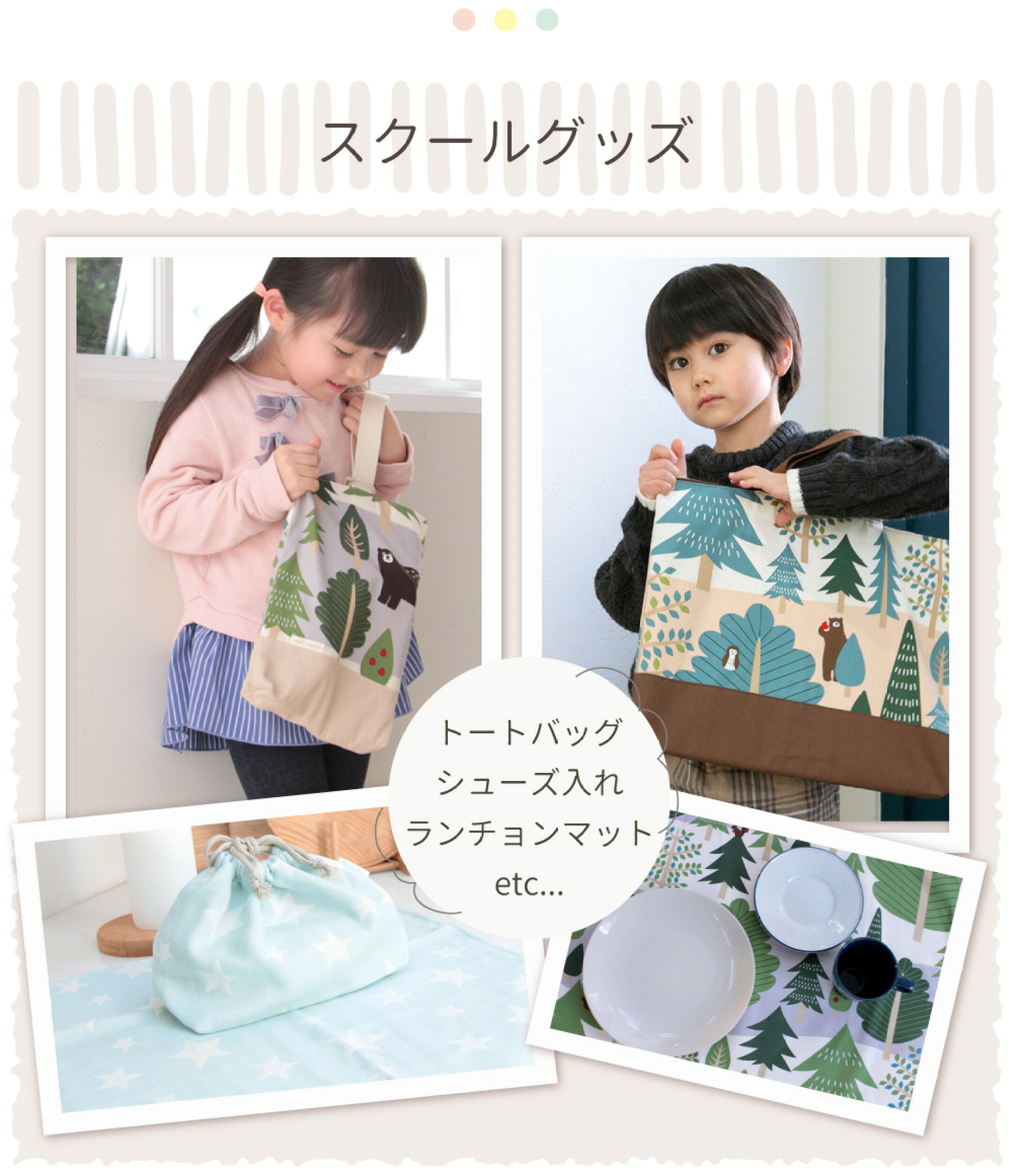 日本製 入園入学グッズ トートバッグ 巾着付き セットでお得 | 入園セット 入学セット 女の子 男の子 通園バッグ 入園バッグ レッスンバッグ 保育園 幼稚園 小学校 コップ入れ コップ袋 お道具箱 給食袋 北欧 動物 洗える 無地 かわいい おしゃれ