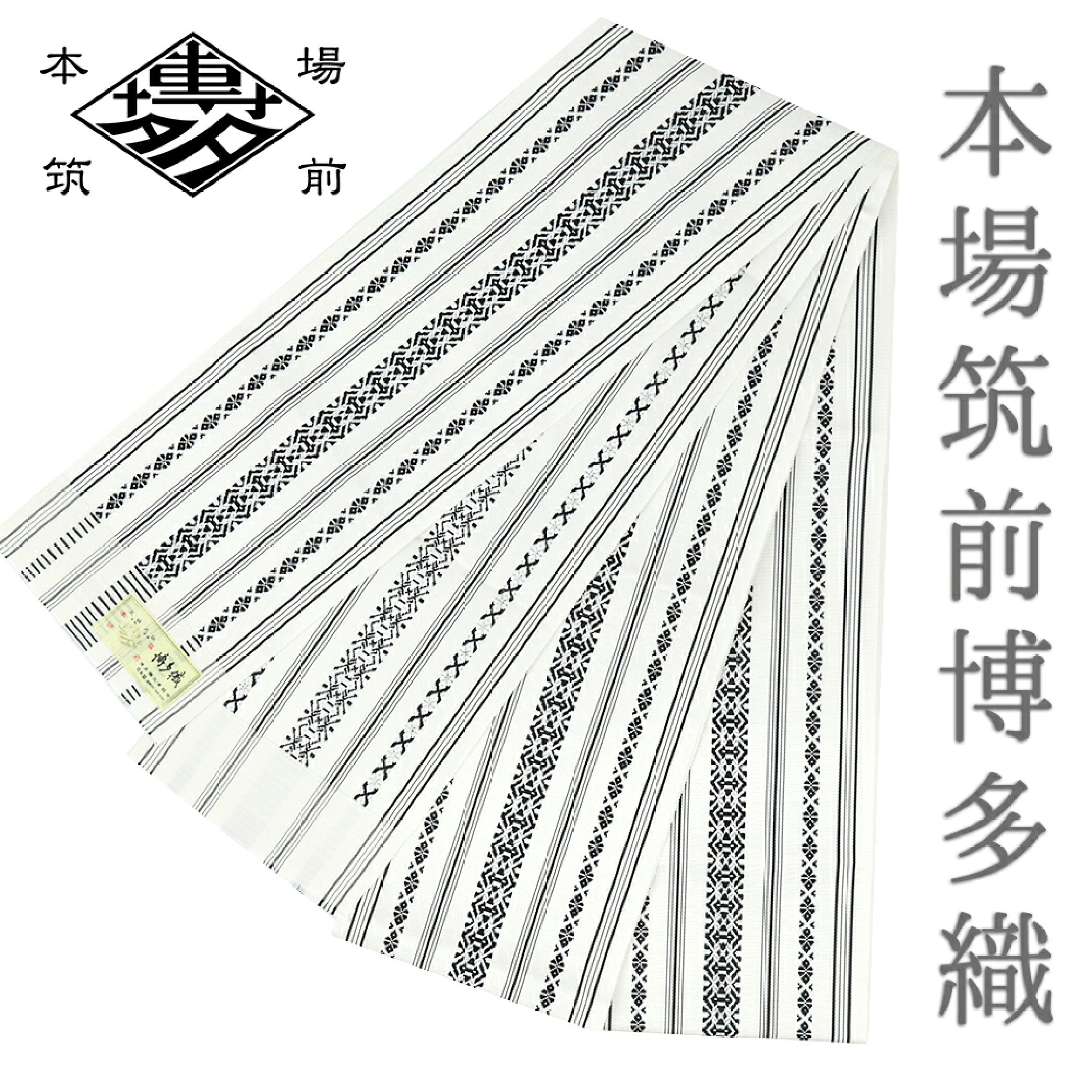 半幅帯 博多織 長尺 黒地 白 黄色 浴衣帯 博多帯 袴下帯 袴下 正絹 浴衣 献上 本場筑前博多織 細帯 単衣帯 単衣 4寸 四寸 井上絹織 金証紙 日本製 夏祭り 和装 着物 No.10-6069