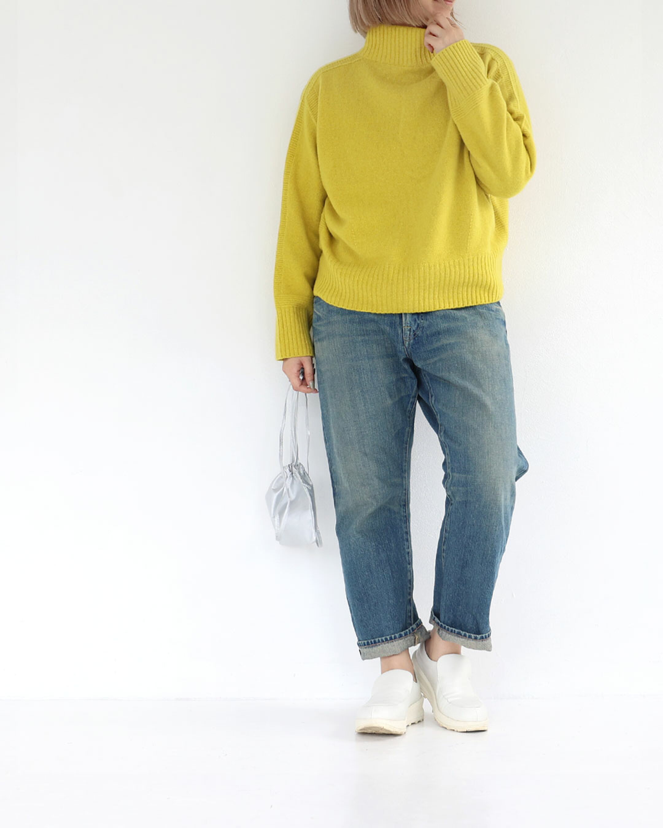 華やかさと可愛らしさを兼ね備えた、特別なミモザイエロー。 カシミヤ混のこのニットだからこそ選びたい、気持ちまで明るくなる色味です。纏うだけで印象がパッと明るく、華やかに