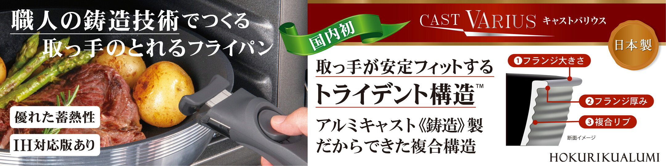 【新製品】キャストバリウス フライパン 日本製 ※取っ手・蓋は別売りです IH& ガス火 北陸アルミ Silkware EZ コーティング
