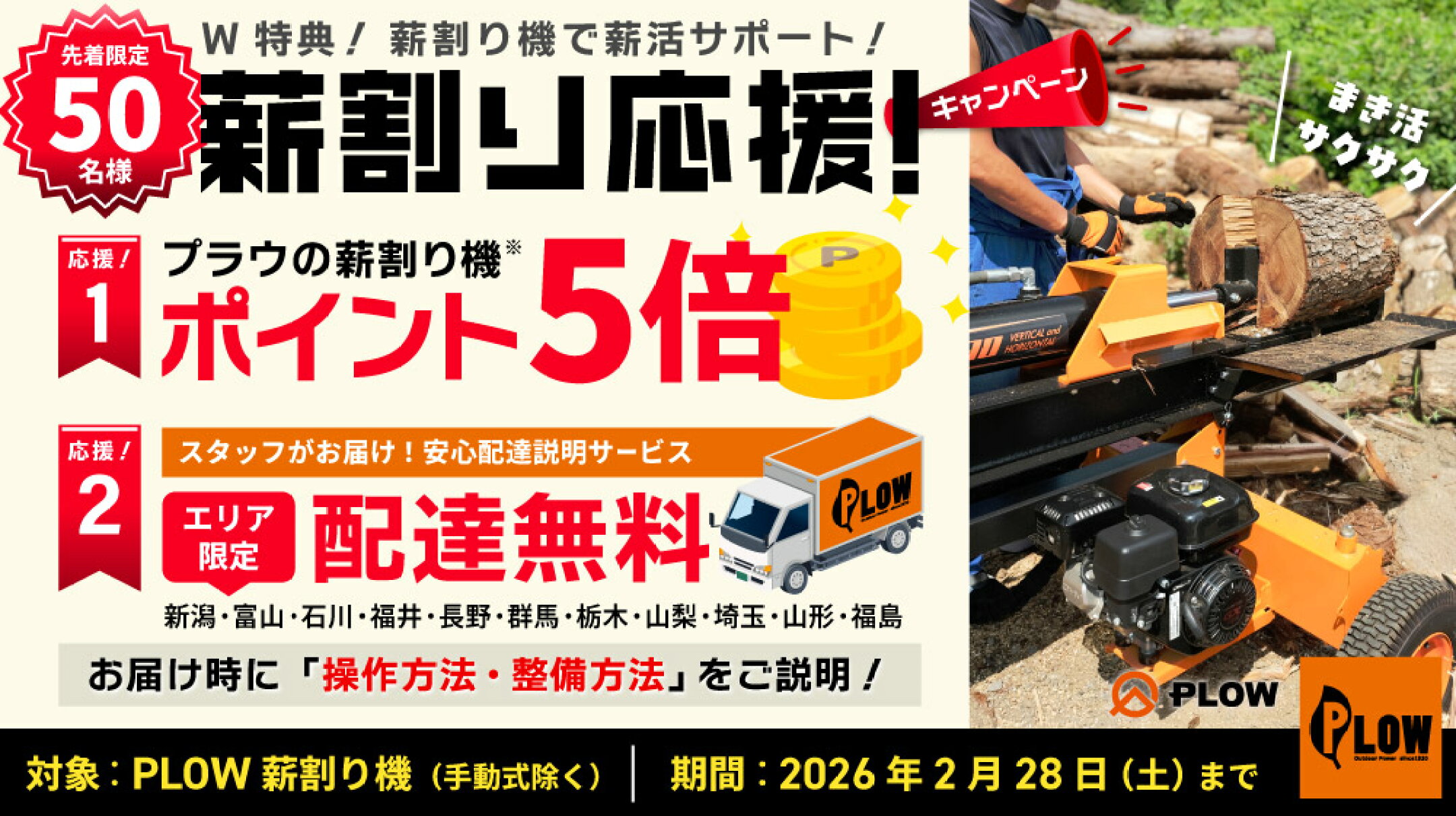 対象の薪割り機がポイント5倍!エリア限定配達無料!