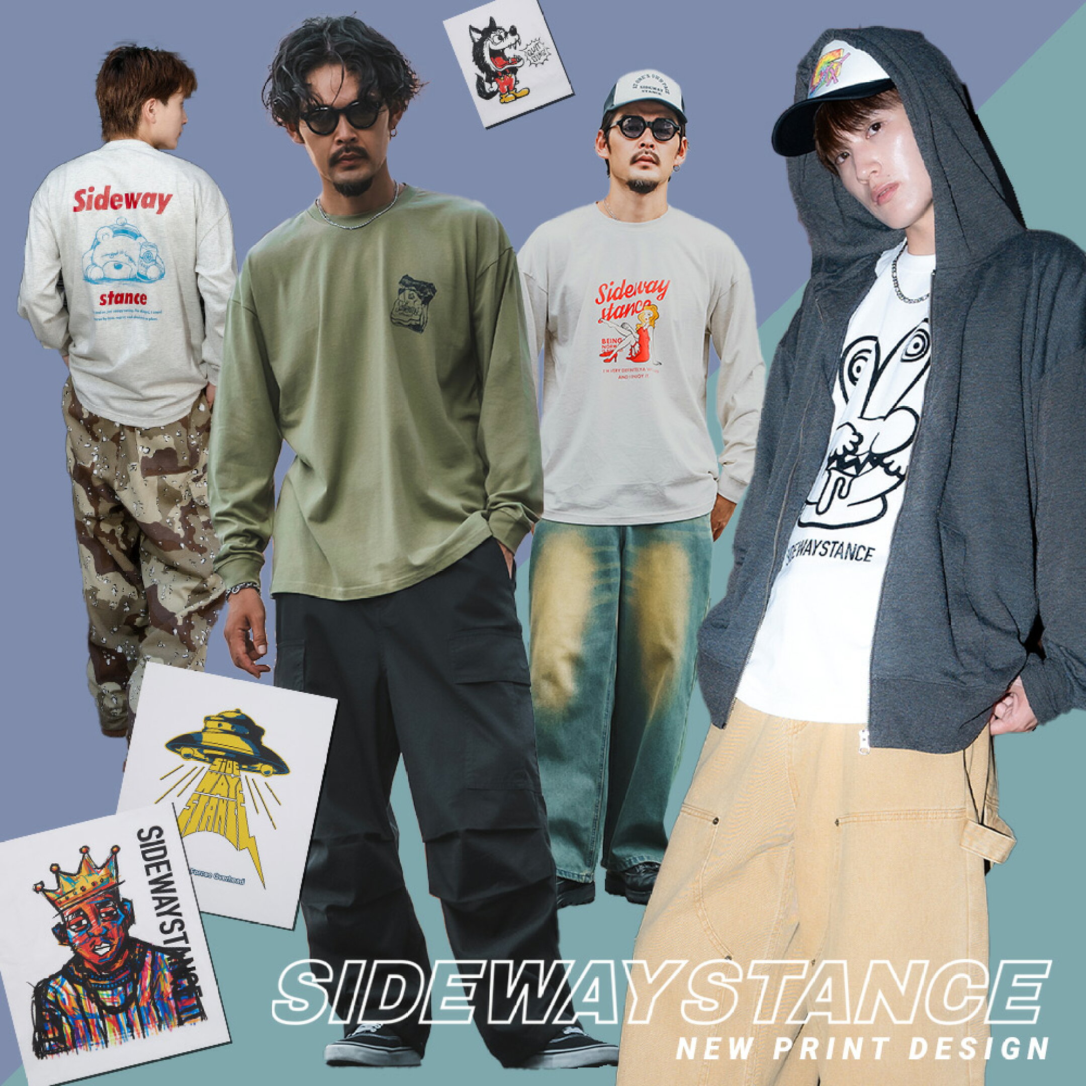 【SALE / 30%OFF】長袖Tシャツ メンズ レディース SIDEWAY STANCE サイドウェイスタンス オリジナルプリント グラフィック ロンT カットソー バックプリント ロゴ オーバーサイズ 大きめ アメカジ カジュアル スケーター ストリート 韓国ファッション