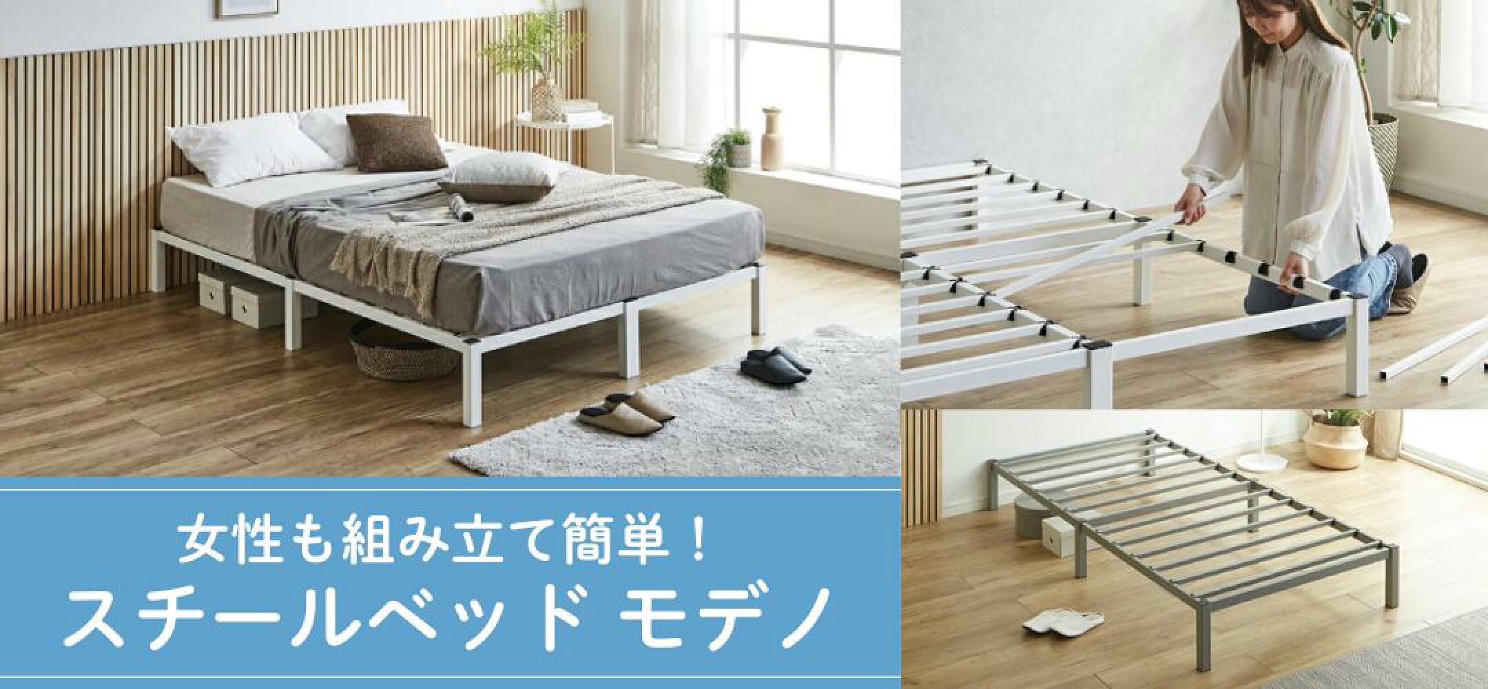 工具不要!女性も簡単組み立て♪スチールベッド「モデノ」