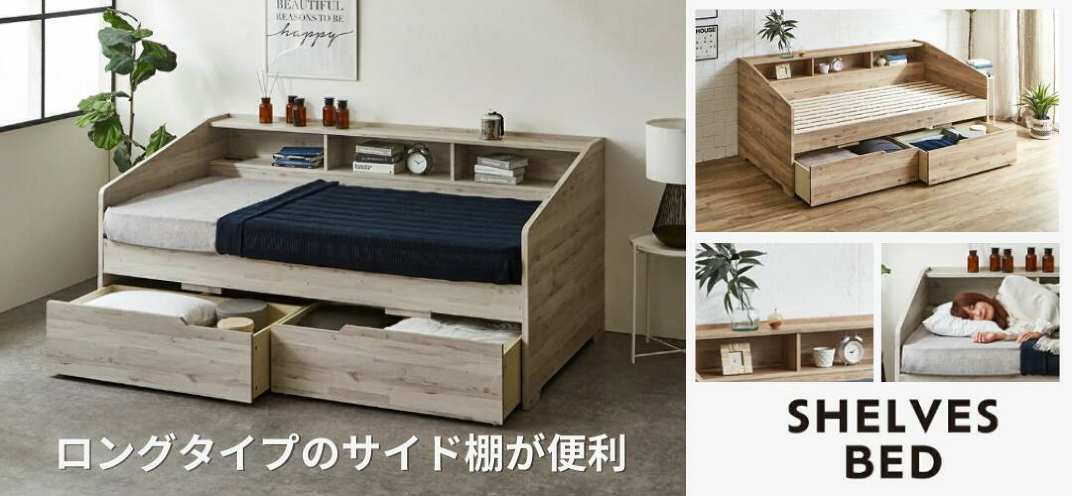 小物の置き場に便利!ロングタイプのサイド棚付きベッド