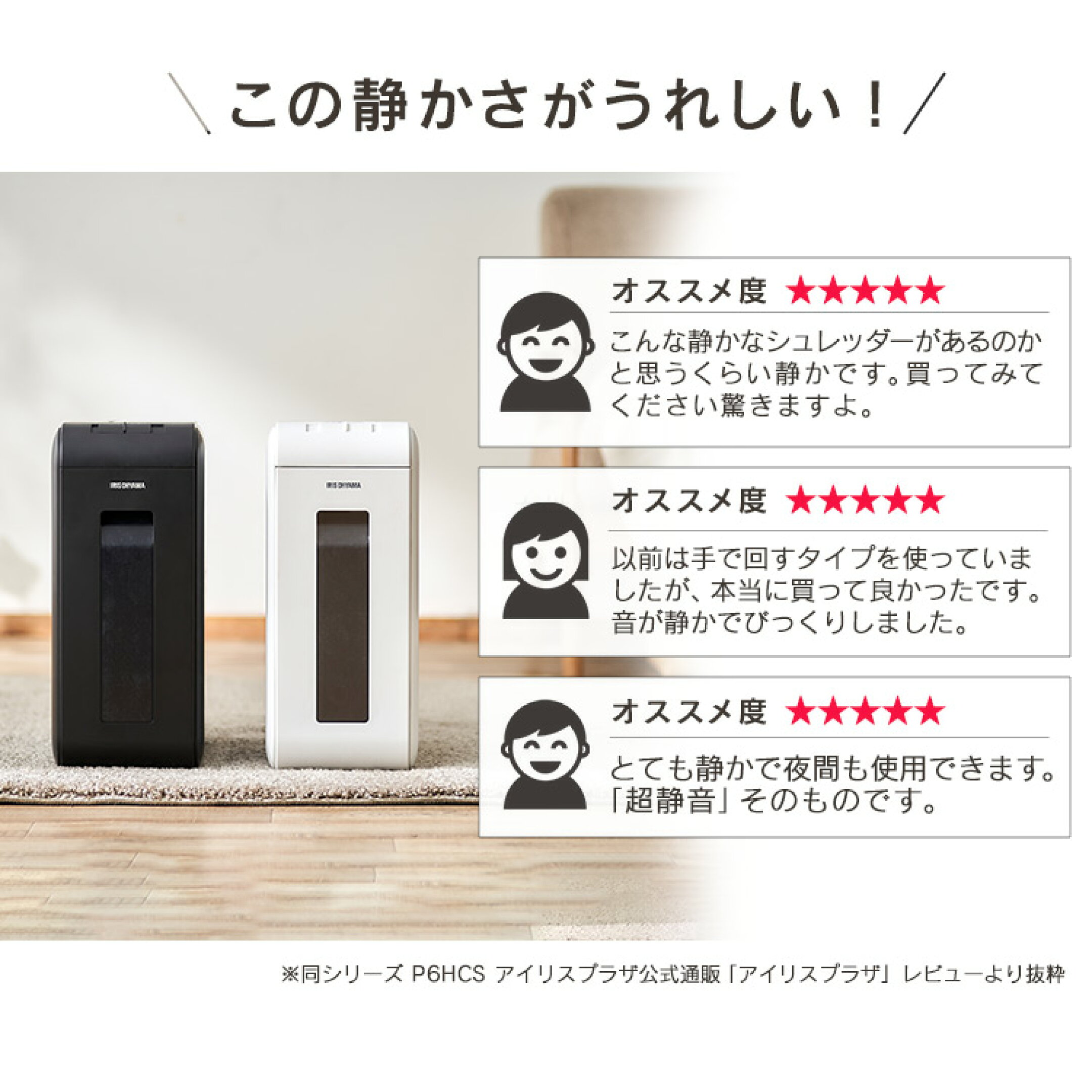 \公式店限定安心2年保証/シュレッダー 家庭用 電動 静音 コンパクト パーソナルシュレッダー ブラック ホワイト送料無料 12L 細断 10分連続使用 クロスカット 個人情報 書類 リモート 家 在宅 オフィス アイリスオーヤマ P6HCSV[安心延長保証対象]