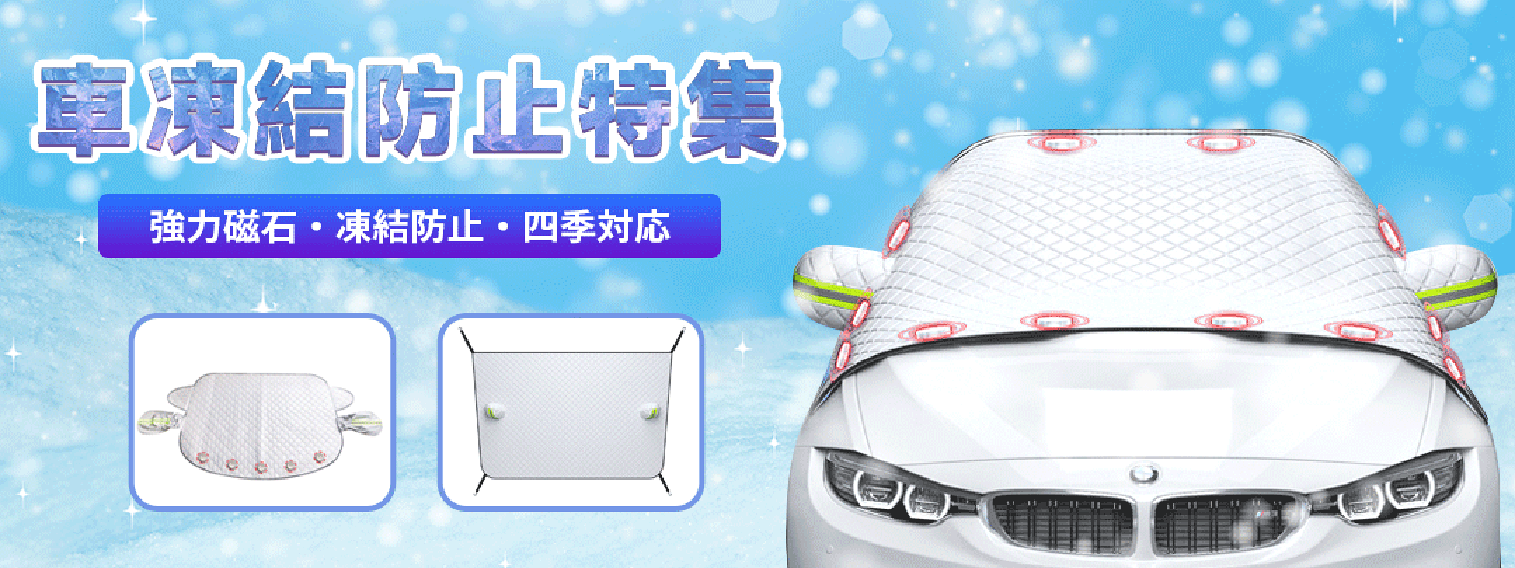 【★マラソン期間★全品10%OFF】【凍結防止/霜よけ】フロントガラス保護カバー フロントガラス 6枚セット 強力磁石内蔵でワンタッチ装着 撥水加工で雨雪対策 折り畳み収納便利 車用冬対策グッズ 車種選ばず簡単取付 フロントガラス 凍結防止 シート 収納袋付き
