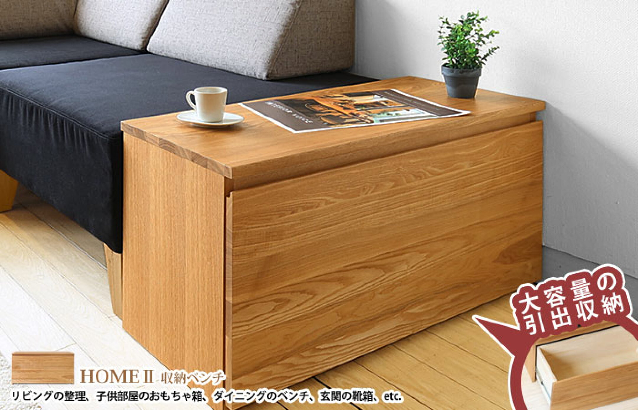 【おもちゃもすっきり隠せる、座れる収納ベンチ 】アウトレット撮影品処分 ドロワーベンチ ベンチチェア 収納ベンチ 引き出し タモ材 タモ無垢材 様々な使い方ができる 子供用のおもちゃ箱 書類入れ HOME-DS2 幅86cm 86シリーズ