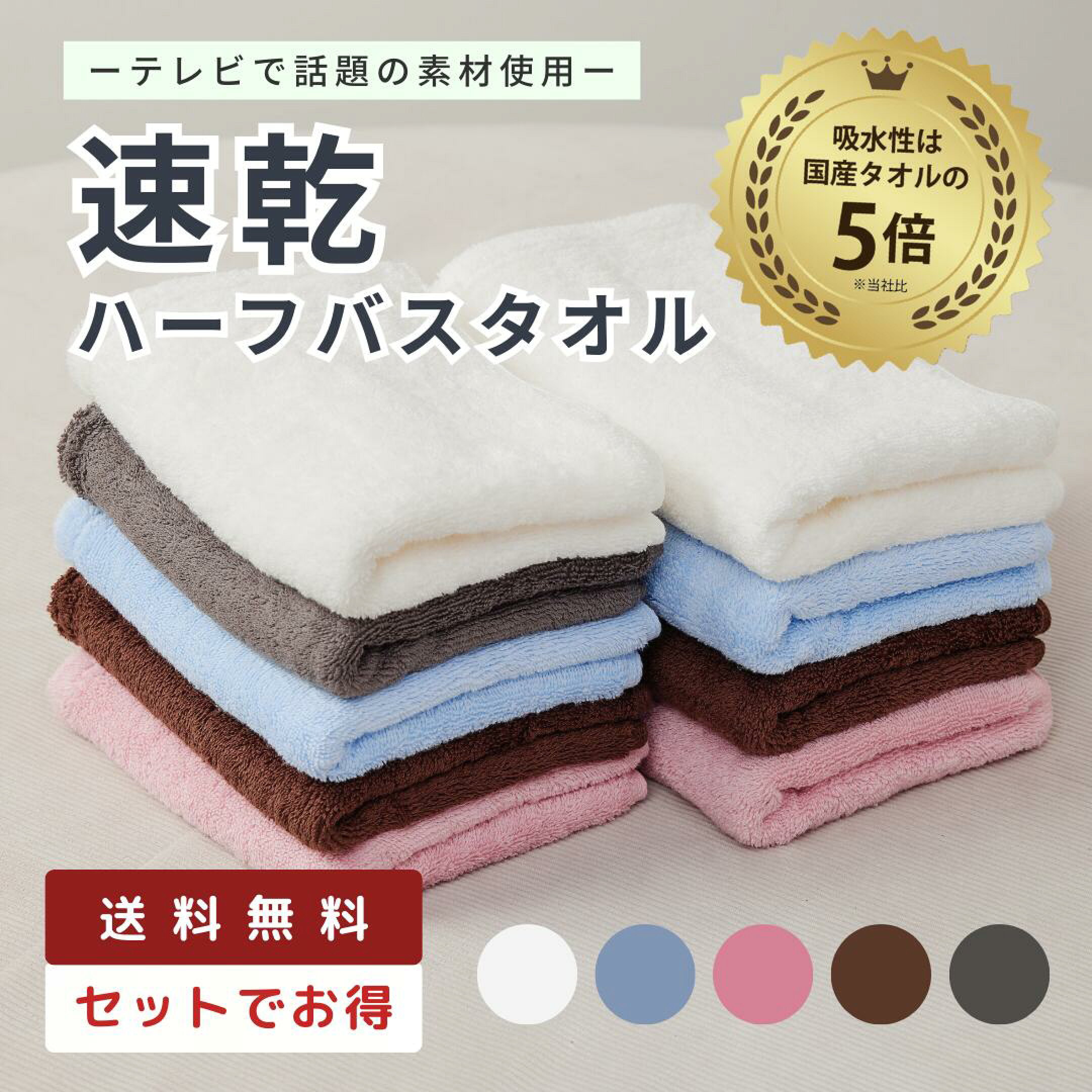 【即日発送】 朝タオル 夜タオル フェイスタオル・ハーフバスタオル 吸水 速乾 厚手 軽量 ふわふわ 部屋干しOK バスタオル小さめ ヘアドライ 洗顔 時短 34×80~100cm 5色 毎日使い ギフト