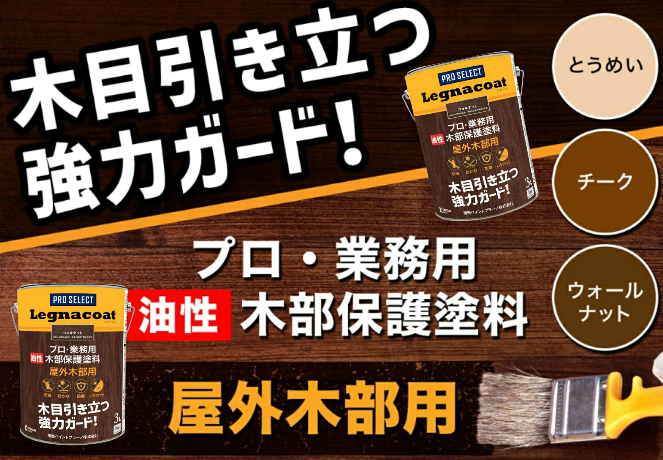 【業界トップクラスの耐久性】ウッドデッキ長持ち! 関西ペイントブラーノ LEGNACOAT 3L 全3色 油性 木材保護 塗料 【屋外 木部 ウッドデッキ ログハウスの塗装に】【防腐 × 防虫 × 木目を生かした着色】プロ 業務用