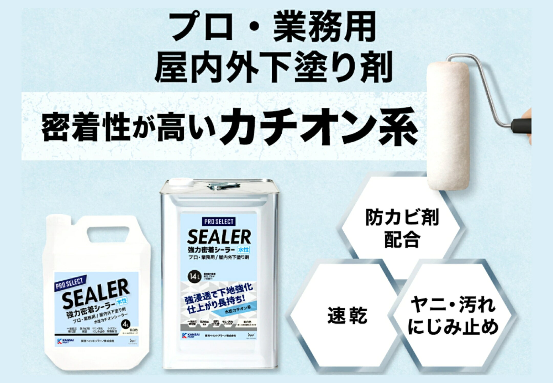 PRO SELECT 水性強力密着シーラー 乳白色 4L~14L カチオンシーラー 関西ペイント ペンキ 塗料 水性 シーラー 下塗り剤 密着性 耐久性 速乾性 水性カチオンシーラー 乳白色 業務用 日本製 ヤニ 汚れ にじみ止め 防カビ 水性塗料 下地強化 プロ用 室内 水性カチオンシーラー