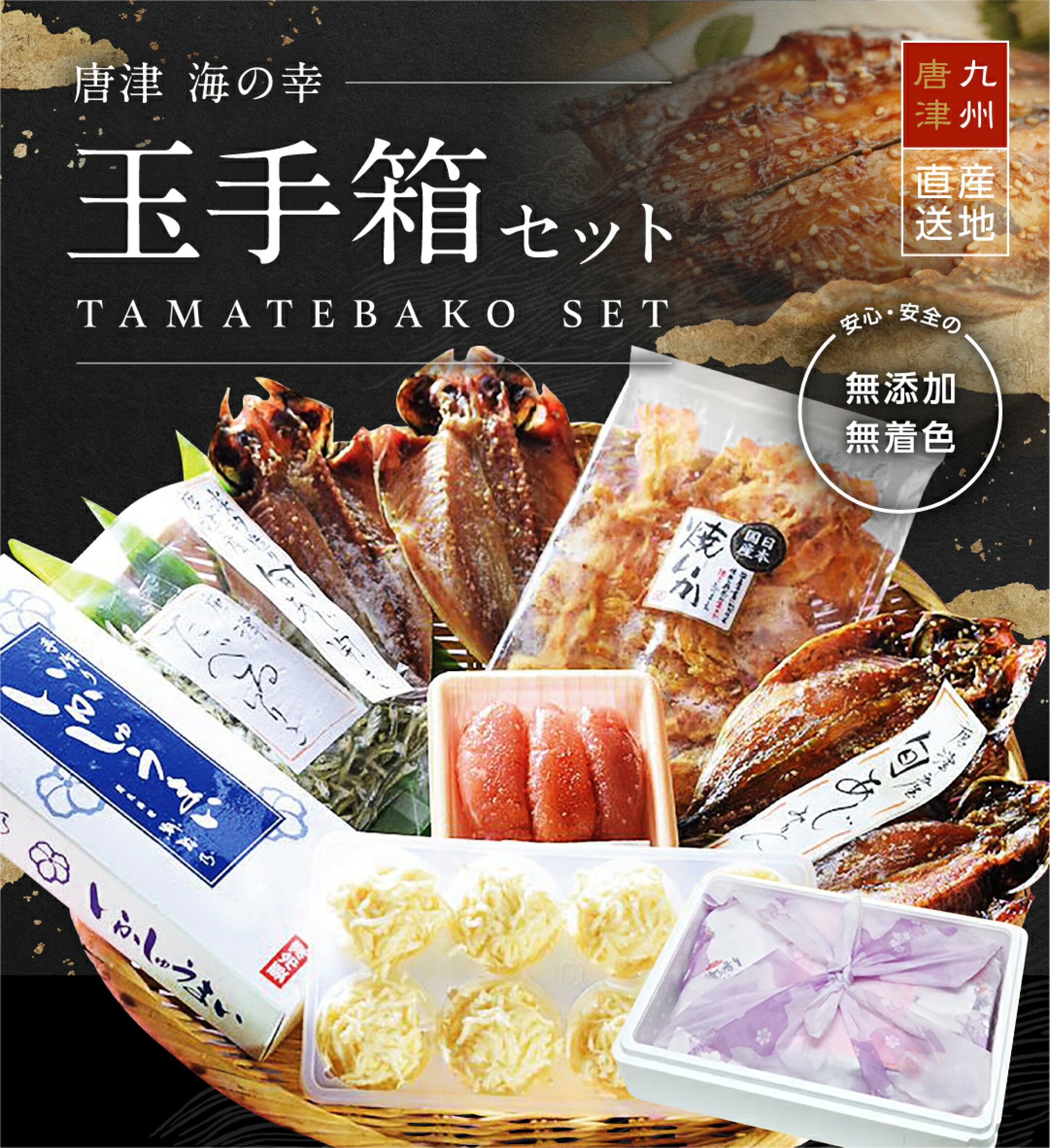 【お歳暮 ギフト】【送料無料】唐津 海の幸 特別限定 玉手箱セット【無添加・無着色】唐津産 旬アジ 醤油みりん 淡汐干し手作り 佐賀 呼子イカしゅうまい無着色メンタイコ 国産 焼きいか唐津産 おつまみいりこ 【御歳暮 干物 セット ギフト プレゼント】