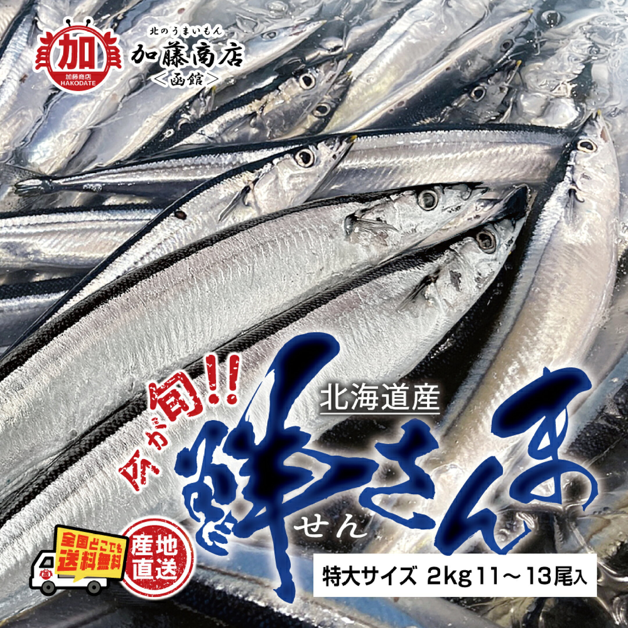 入荷順発送! 北海道産 鮮さんま 特大サイズ 1箱 (2kg/11~13尾入(1尾約150~180g)) 【全国送料無料】<冷蔵> 生さんま 旬の味 脂がのって美味しい時期 産地直送 刺身 鮮魚 クール便