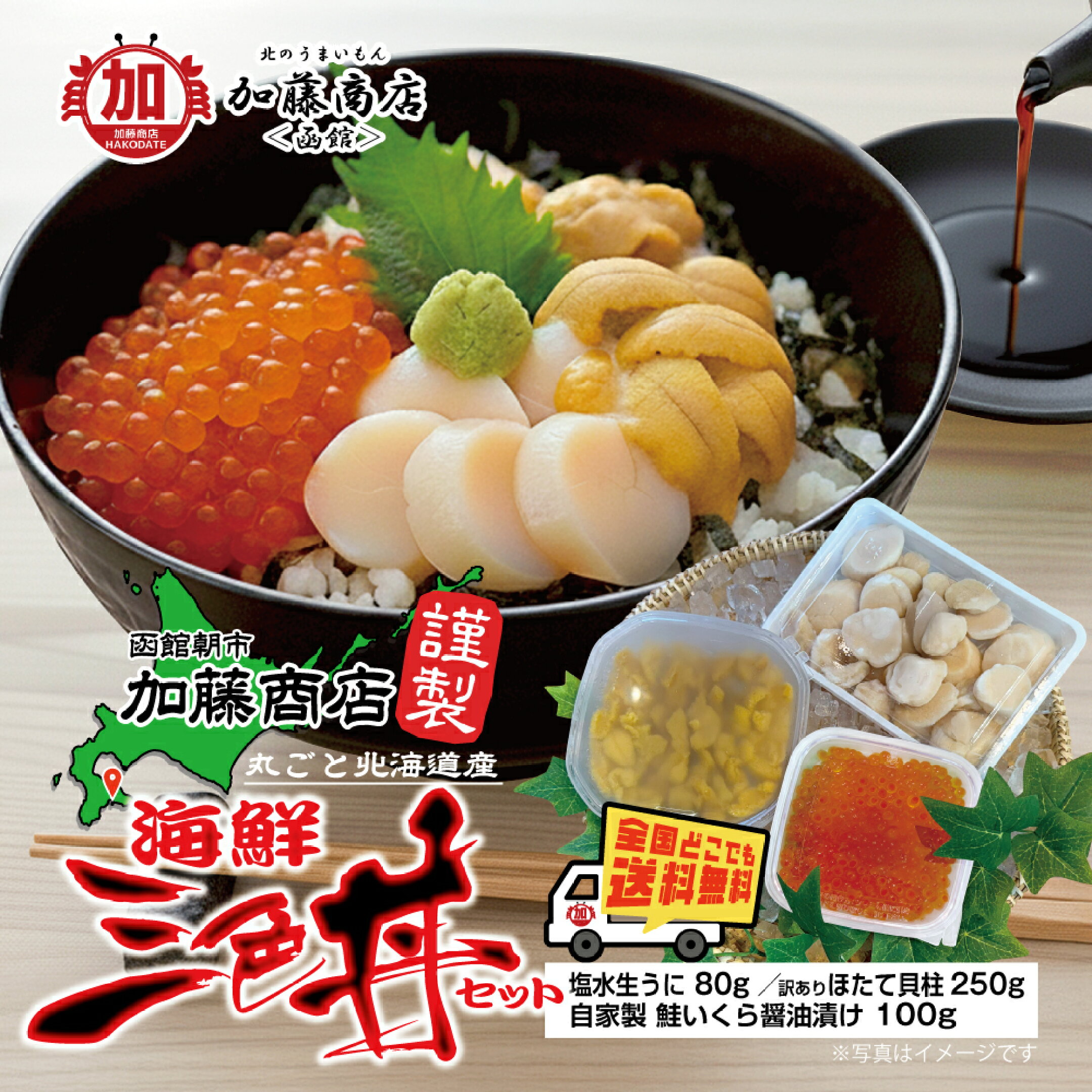 函館朝市謹製 丸ごと北海道産!海鮮三色丼セット