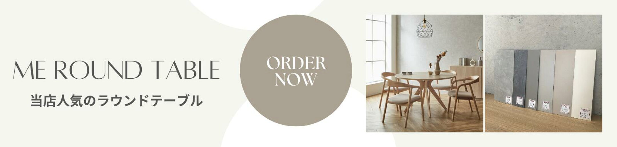【丸テーブル】【脚Normalcolor oak】【天板6色対応】ME エムイー 幅100 幅110 幅120 ラウンドテーブル セミオーダー ダイニングテーブル 丸テーブル メラミン素材 アイカ工業 AICA グレージュカラー 石目柄 グレージュ ベージュ 脚オーク