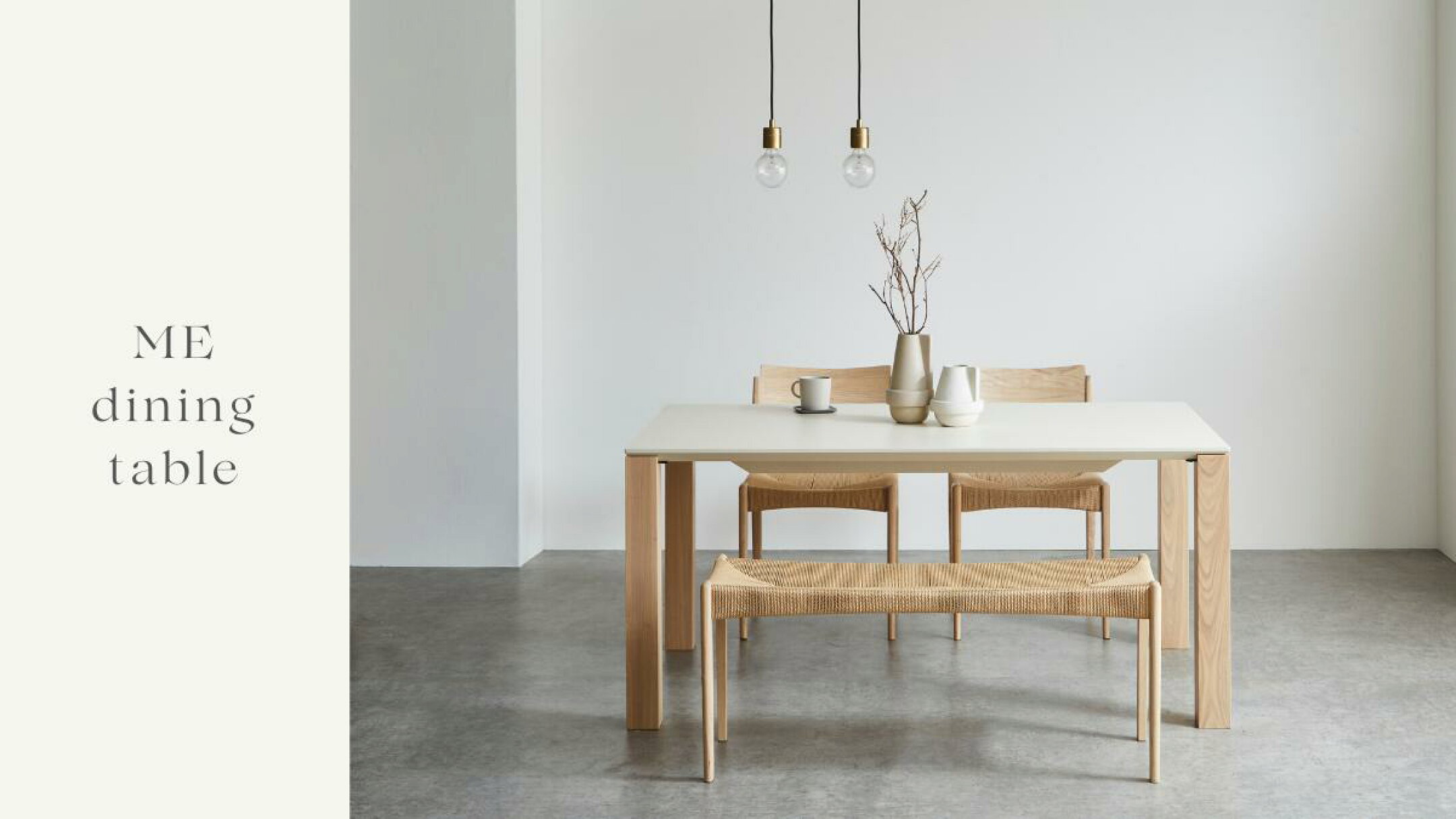 【長方形】【脚Normalcolor oak】ME エムイー ダイニングテーブル セミオーダー 140 150 160 170 180 190 200 サイズ メラミン素材 幅140~200 アイカ工業 AICA モールテックス モールテックス風 モールテックス柄 石目柄 グレージュ ベージュ アイボリー